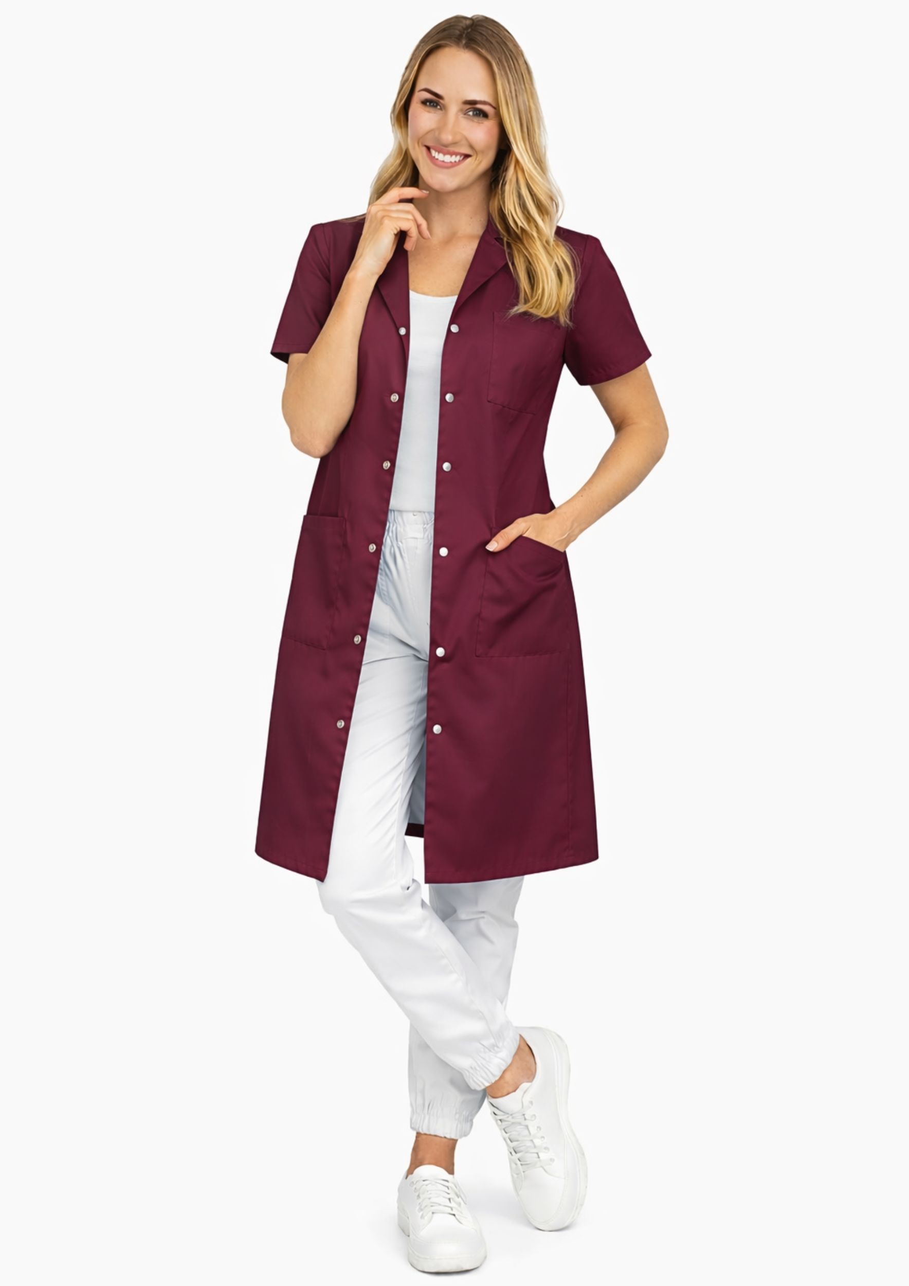 Odkryj fartuch medyczny damski, który łączy elegancję, wygodę i trwałość. Zaprojektowany dla lekarzy, pielęgniarek, kosmetologów, farmaceutów oraz wszystkich profesjonalistów ceniących profesjonalny wygląd w pracy.