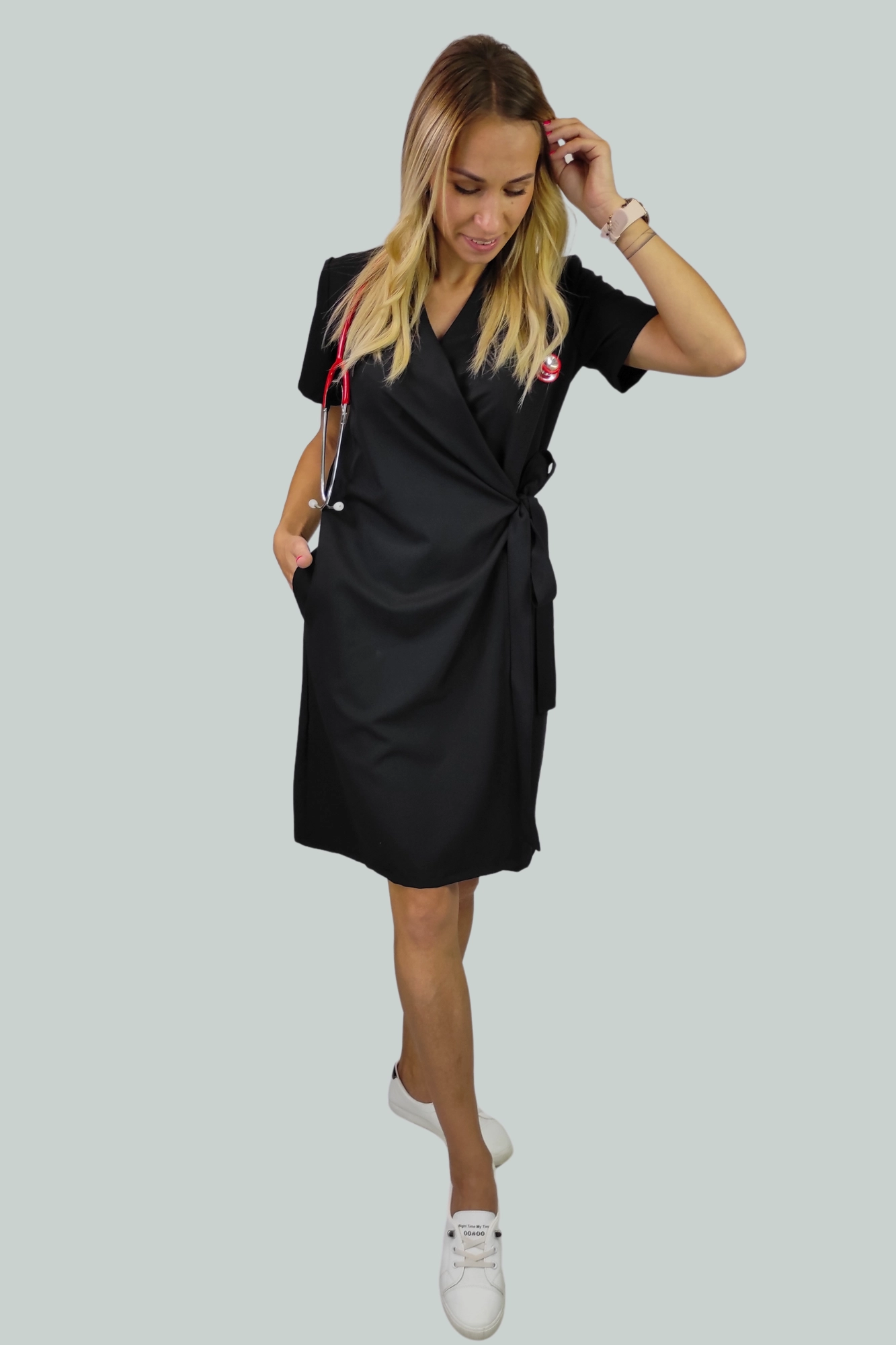Poznaj sukienkę medyczną kimono w kroju kopertowym – nie jest to zwykły uniform, to stylowa odpowiedź na potrzeby nowoczesnych kobiet pracujących w branży medycznej i beauty.