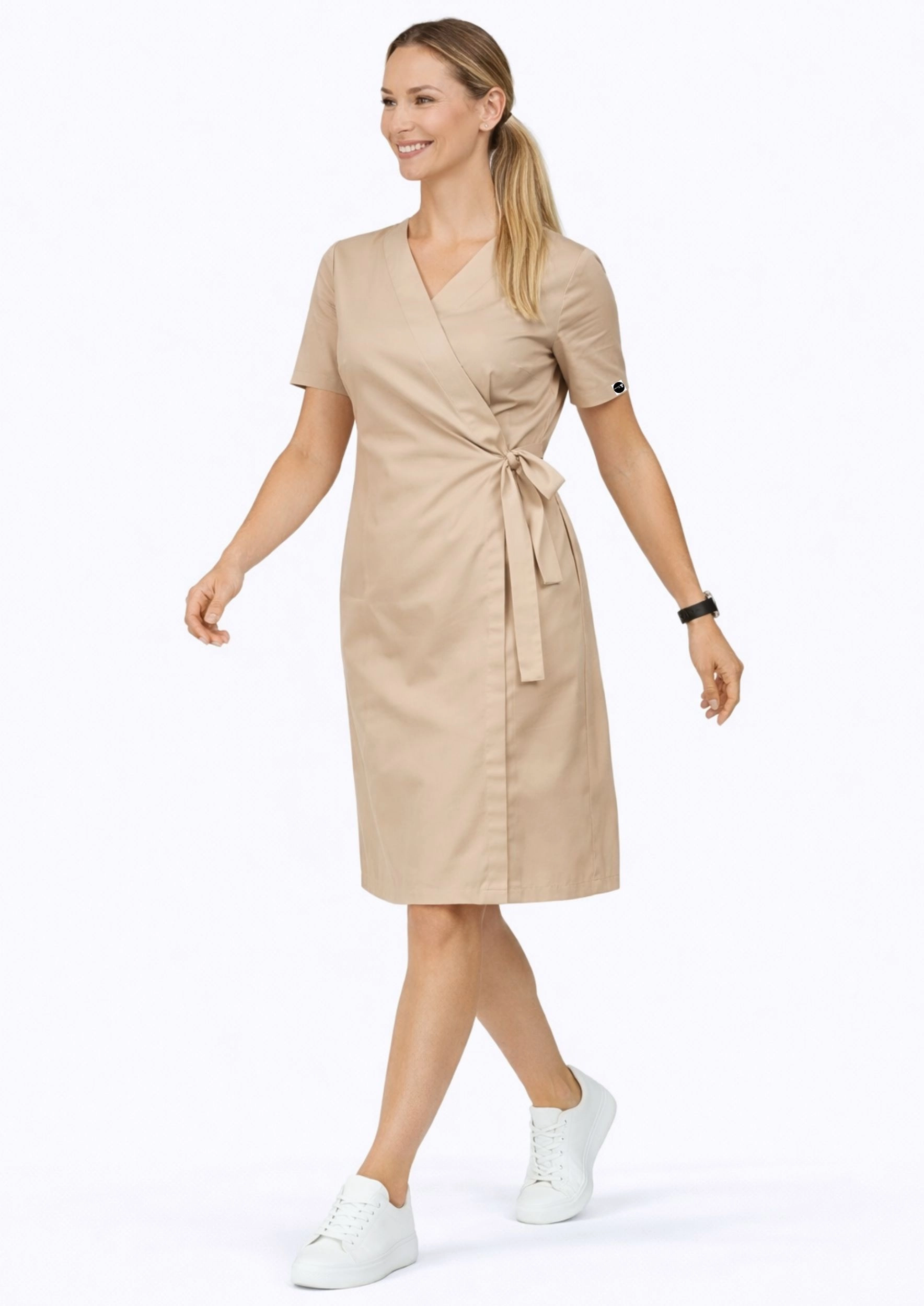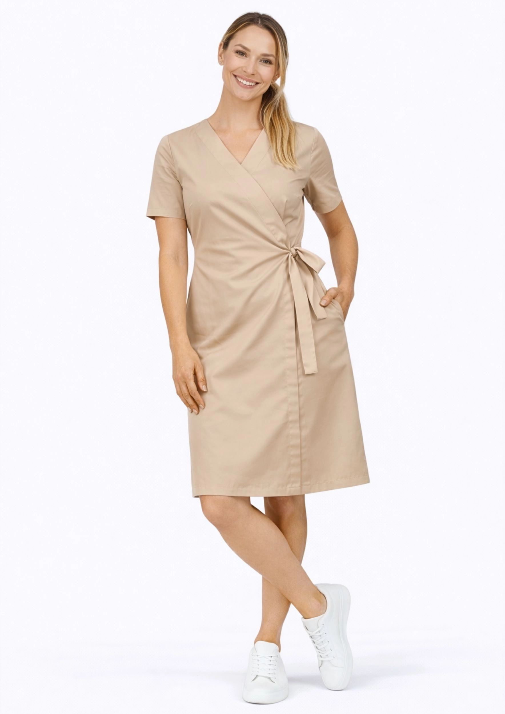 ✔️ Nowoczesny krój typu wrap dress z wiązaniem w talii – podkreśla sylwetkę i zapewnia wygodę noszenia