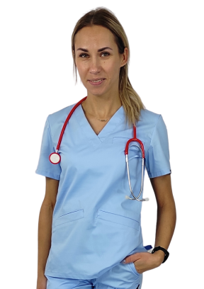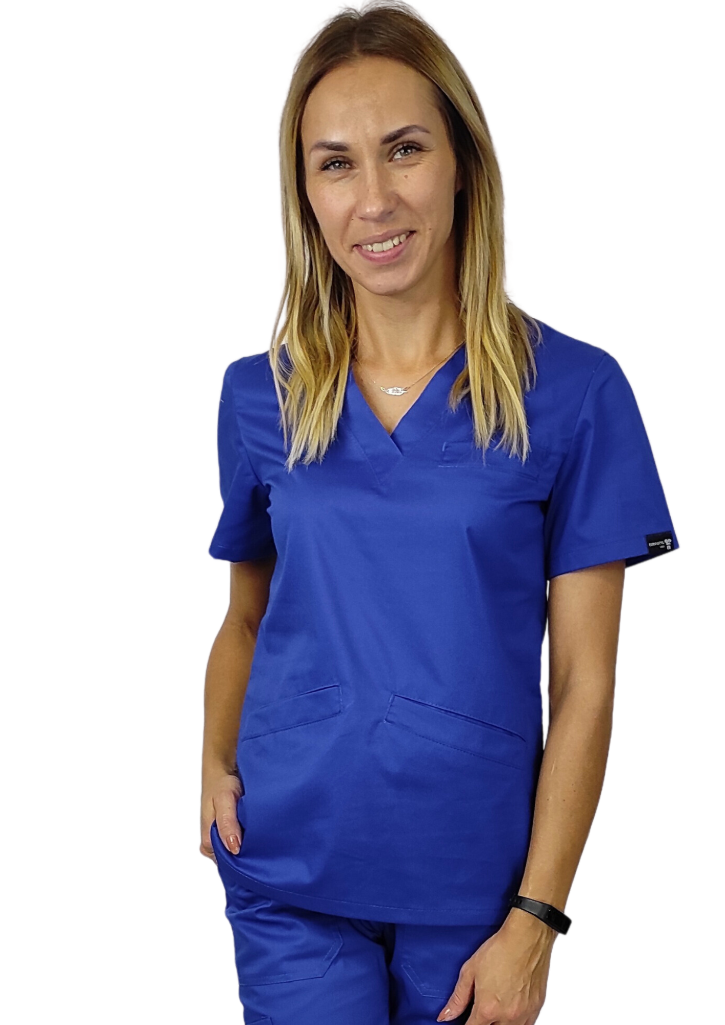 - Kieszenie: 3 dyskretne, kryte kieszenie, które są praktyczne i jednocześnie estetyczne – idealne na akcesoria medyczne.