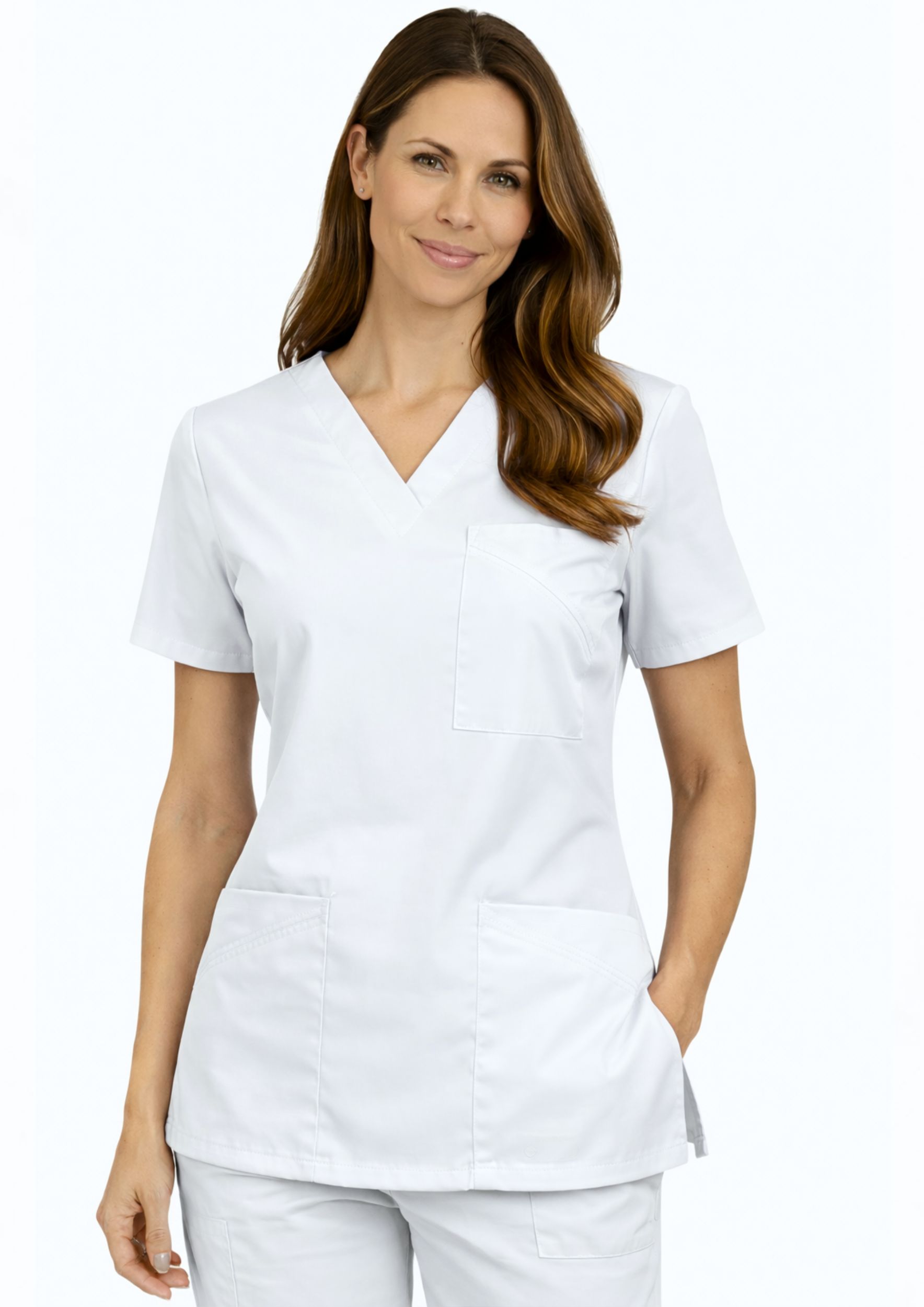 Bluza medyczna, zaprojektowana specjalnie dla lekarzy, pielęgniarek i pracowników służby zdrowia. Lekka, praktyczna i stylowa – zapewni Ci pełną swobodę ruchów przez cały dzień!