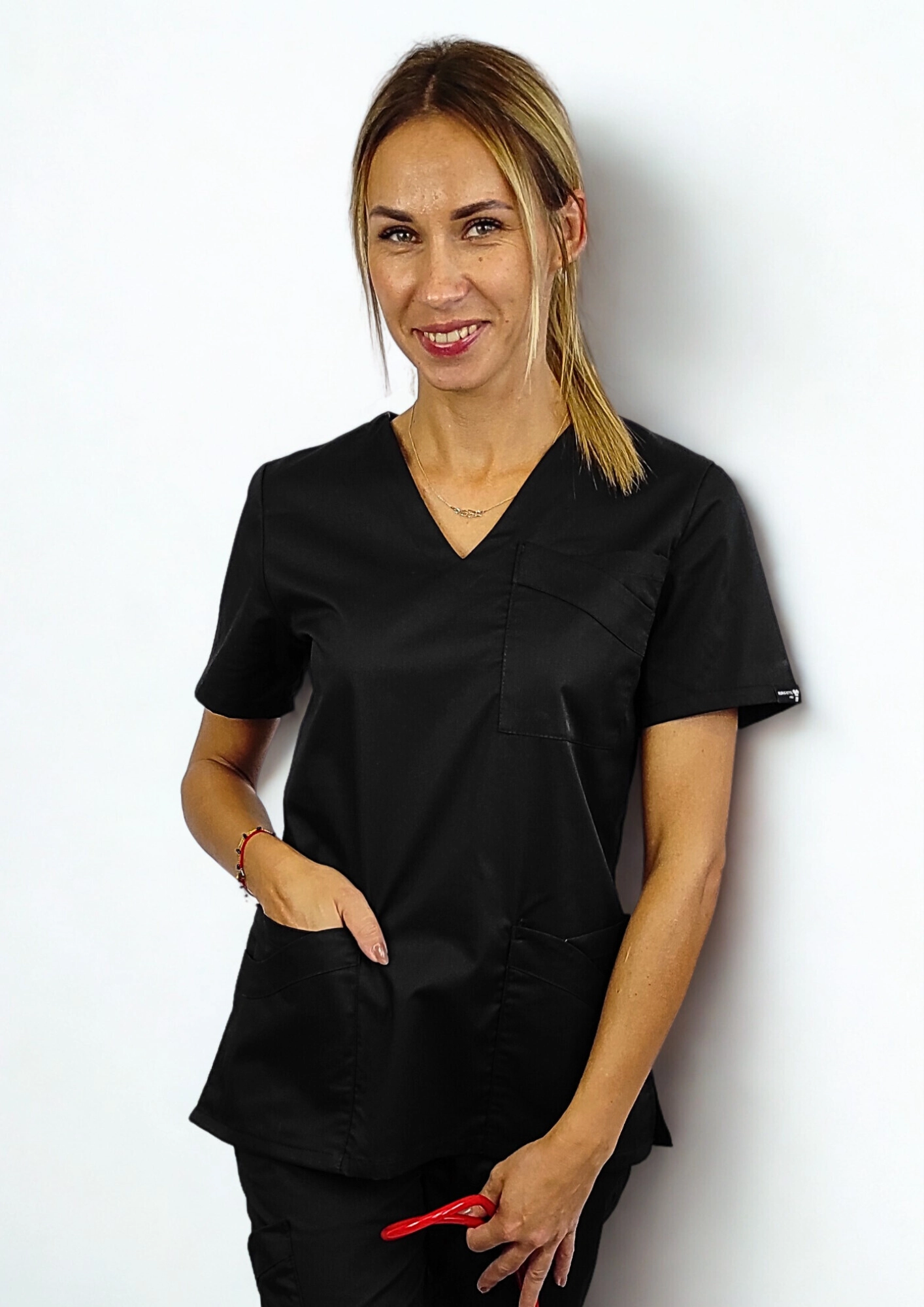 Idealna jako bluza medyczna damska premium dla pielęgniarek, lekarek, stomatologów, kosmetologów, fizjoterapeutów, personelu klinik, gabinetów, szpitali i salonów beauty. Doskonały element kompletu scrubs oraz nowoczesnego uniformu medycznego.
