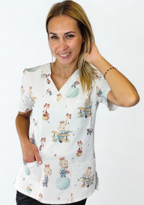 Bluza posiada 3 funkcjonalne kieszenie przydatne podczas codziennych czynności - dwie na biodrach oraz jedną na piersi, zakładana przez głowę, dekolt w serek.Dwa rozcięcia po bokach.Krój taliowany.