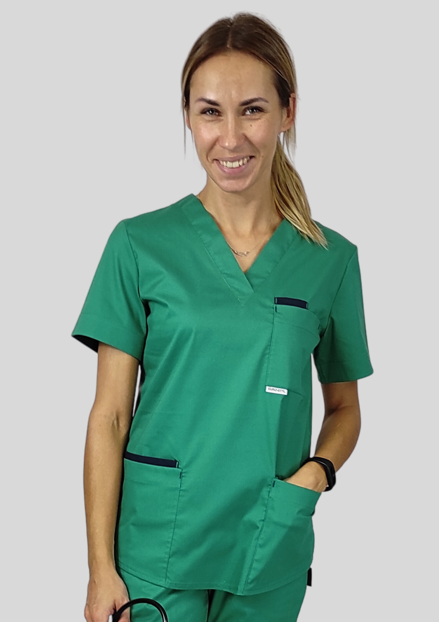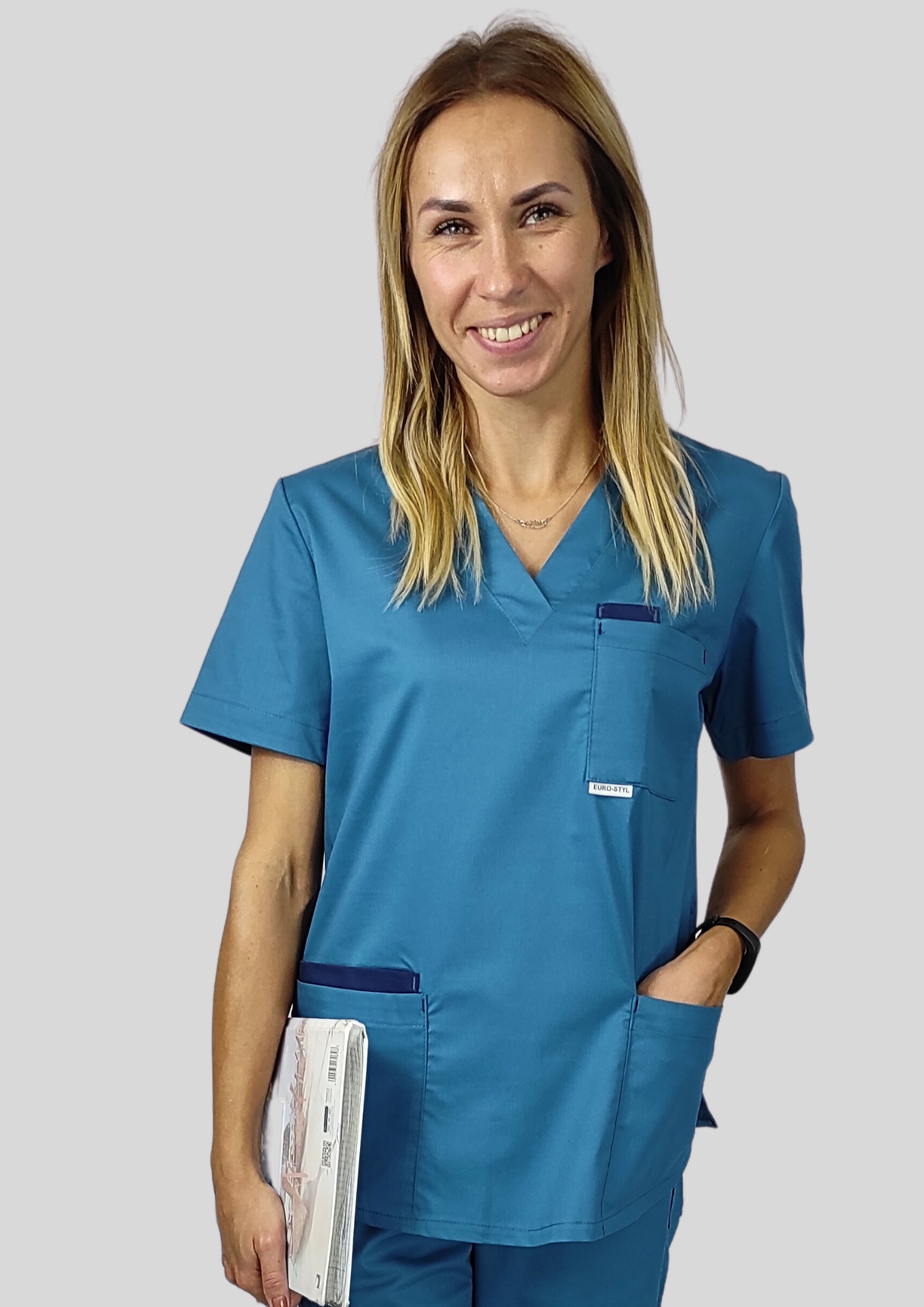 Bluza FLEXI została stworzona z myślą o kobietach, które w pracy chcą czuć się pewnie, swobodnie i stylowo – niezależnie od tego, czy jesteś pielęgniarką, lekarką, kosmetolożką czy weterynarką.
