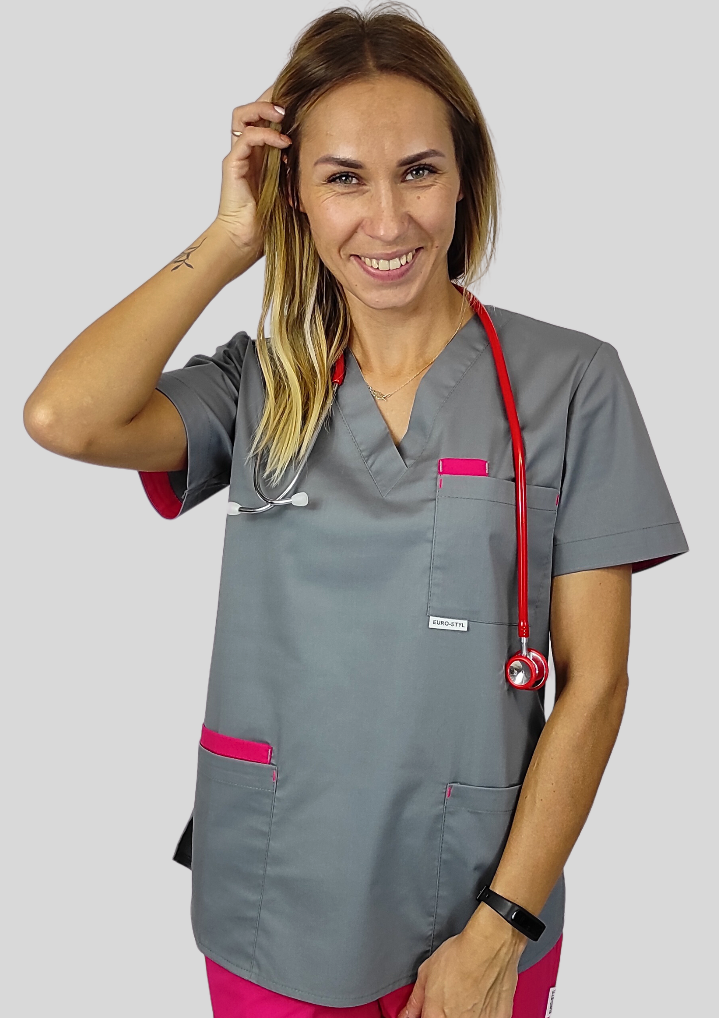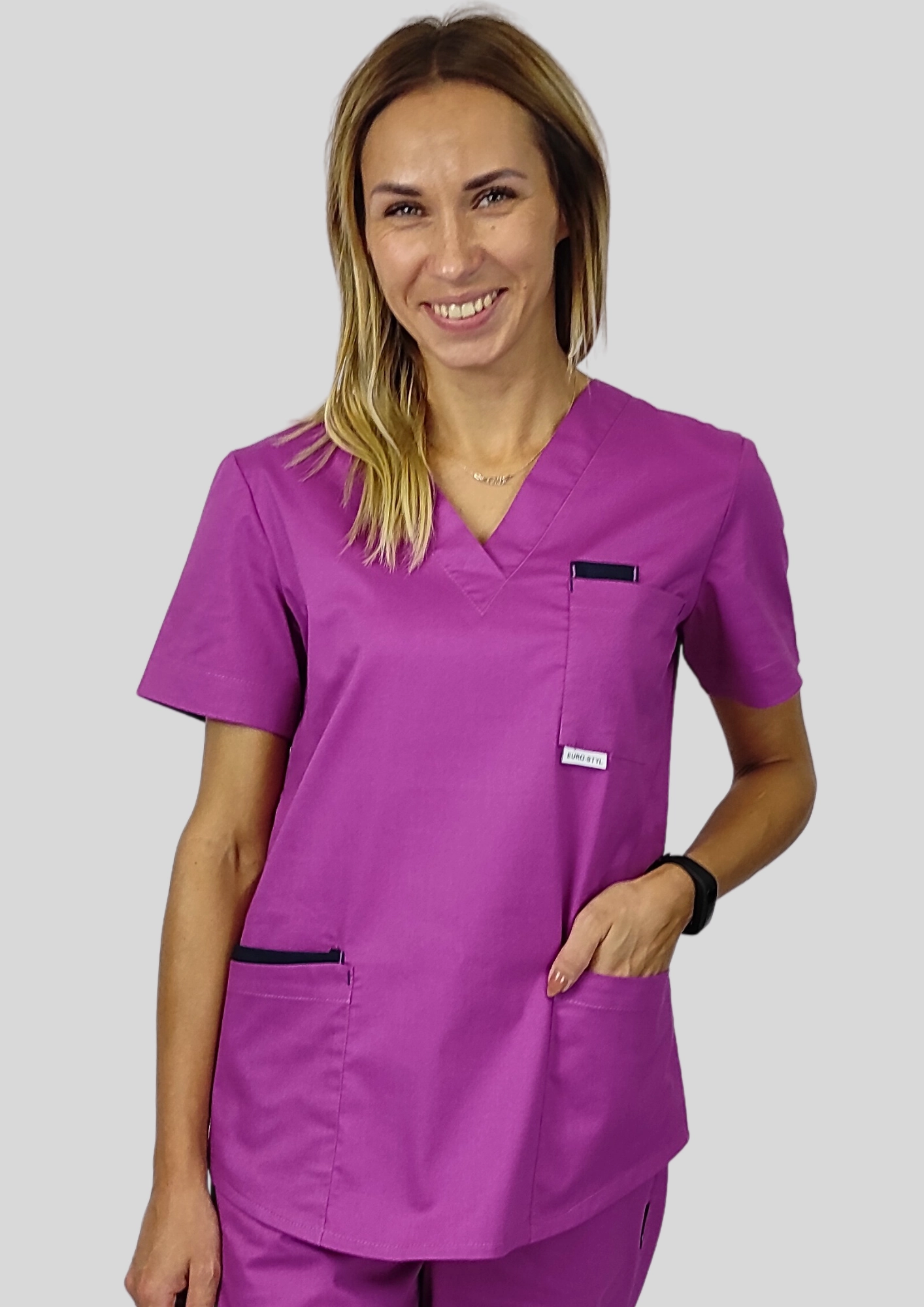Bluza FLEXI została stworzona z myślą o kobietach, które w pracy chcą czuć się pewnie, swobodnie i stylowo – niezależnie od tego, czy jesteś pielęgniarką, lekarką, kosmetolożką czy weterynarką.