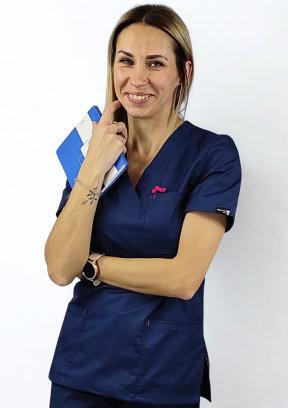 Idealna dla pielęgniarek, lekarek, kosmetyczek i weterynarzy — profesjonalny wygląd i komfort pracy przez cały dzień.