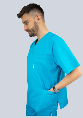 Bluza medyczna męska została wykonana z wysokiej jakości tkaniny, która jest miękka w dotyku, elastyczna i przewiewna. Dzięki dodatkowi lycry dopasowuje się do ciała, zapewniając pełną swobodę ruchów podczas wykonywania obowiązków.