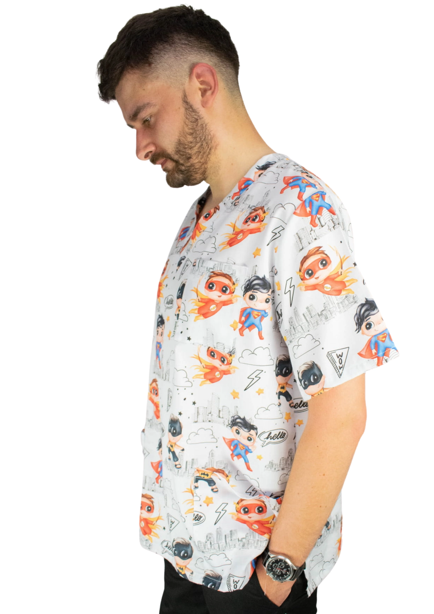 Bluza posiada 3 funkcjonalne kieszenie przydatne podczas codziennych czynności - dwie na biodrach oraz jedną na piersi, zakładana przez głowę, dekolt w serek.Dwa rozcięcia po bokach.