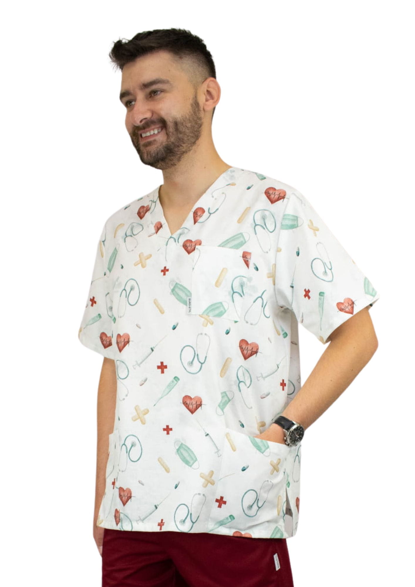 Bluza medyczna męska z modnym, wzorem to idealne połączenie estetyki i praktyczności. Wyprodukowana z najwyższej jakości 100% bawełny, która jest niezwykle przyjemna w dotyku i przyjazna nawet dla osób z wrażliwą skórą. Dzięki zastosowaniu procesów zmiękczania i enzymowania materiał zachowuje wyjątkową delikatność oraz trwałość.