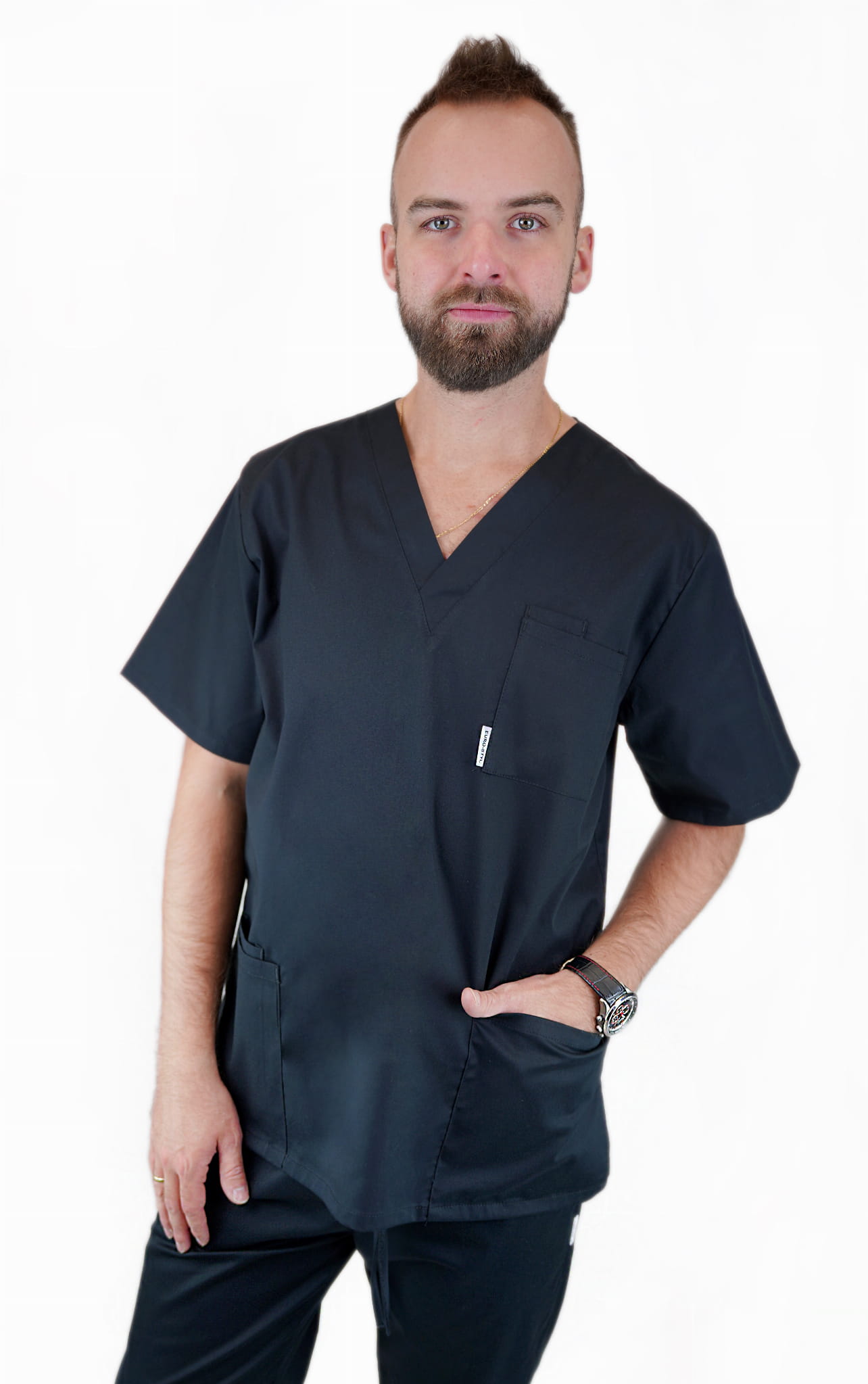 ✔ Bluza medyczna męska z 5 kieszeniami – idealne miejsce na telefon, długopis czy notatnik.
