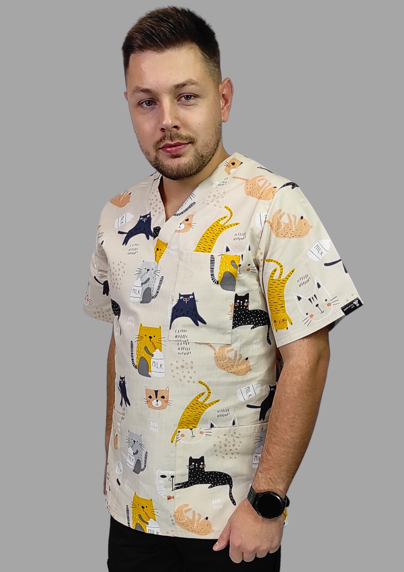 Jeśli szukasz odzieży, która łączy funkcjonalność, komfort i oryginalny styl, ta męska bluza medyczna jest idealnym wyborem! Wykonana w 100% z wysokogatunkowej, oddychającej bawełny, zapewnia komfort nawet w najbardziej wymagających warunkach pracy.
