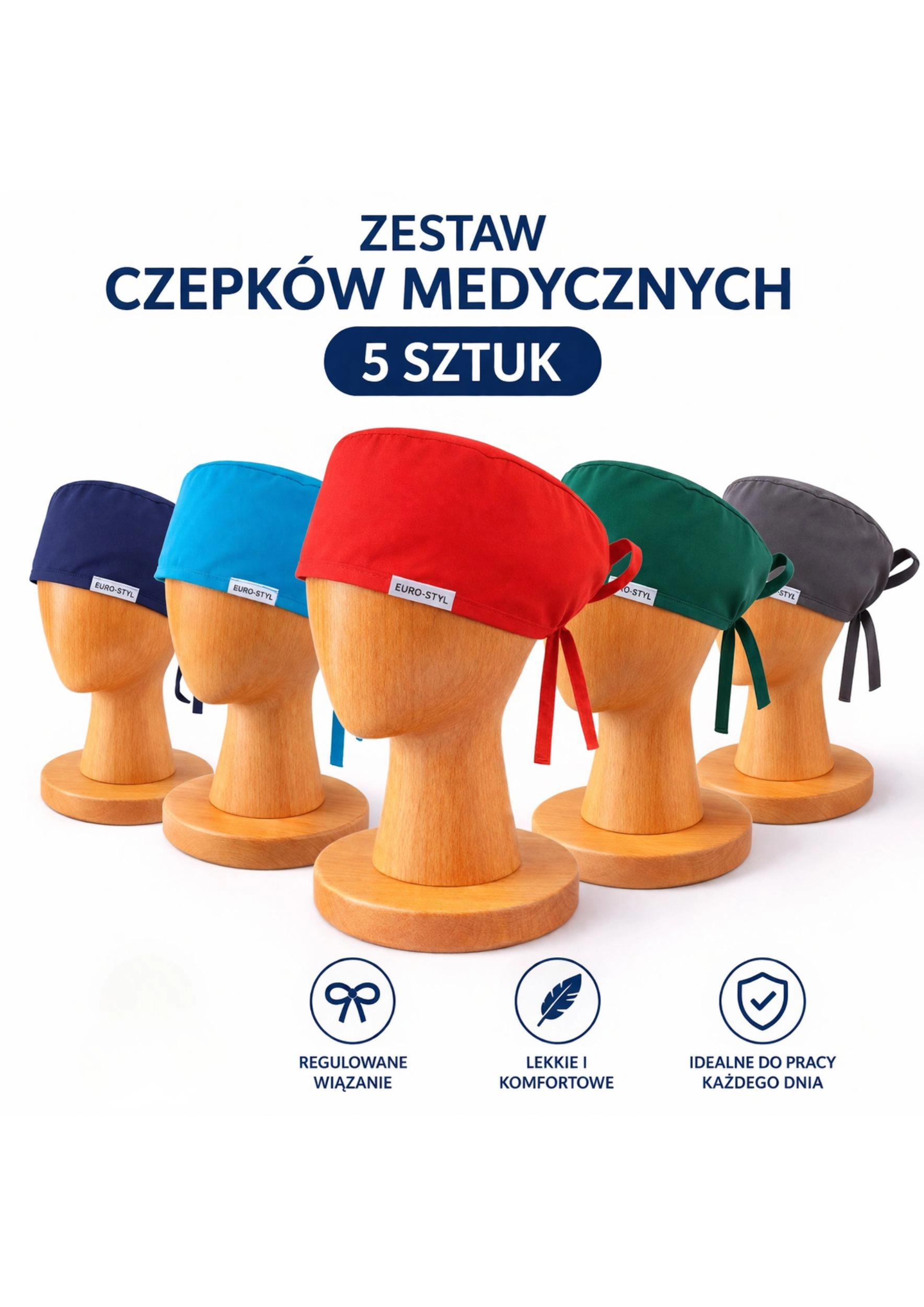 Zestaw czepków medycznych – pakiet 5 sztuk | EURO-STYL