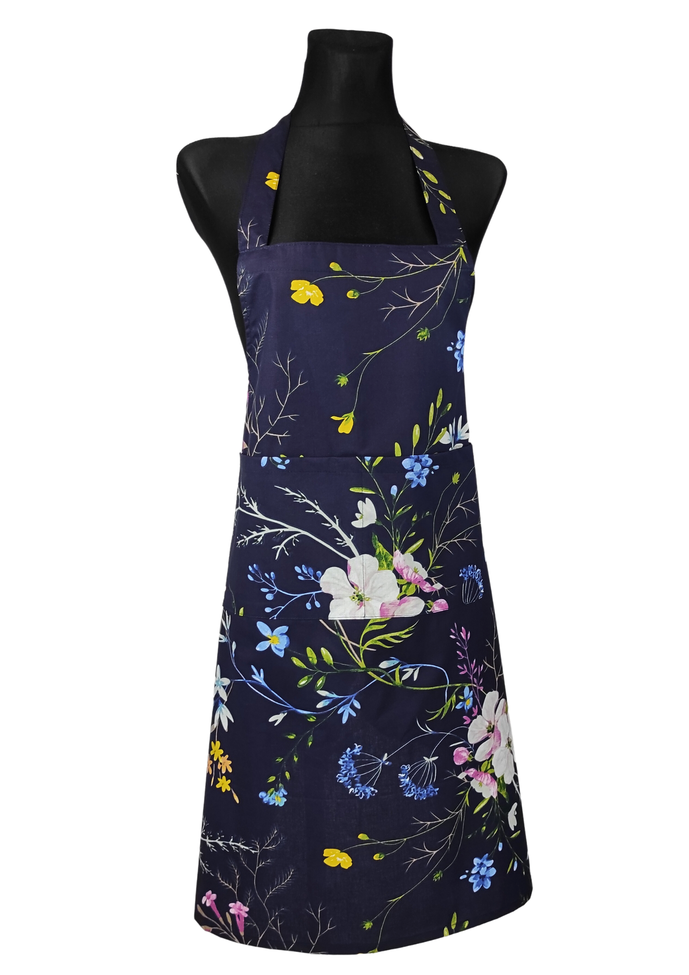 Zapewniają skuteczną ochronę przed zabrudzeniem ubrania. Dzięki wiązaniu w pasie możliwe jest regulowanie rozmiaru. Pasek na szyi - bez możliwości regulowania przyszyty na stałe - doszyta duża kieszeń podzielona na pół