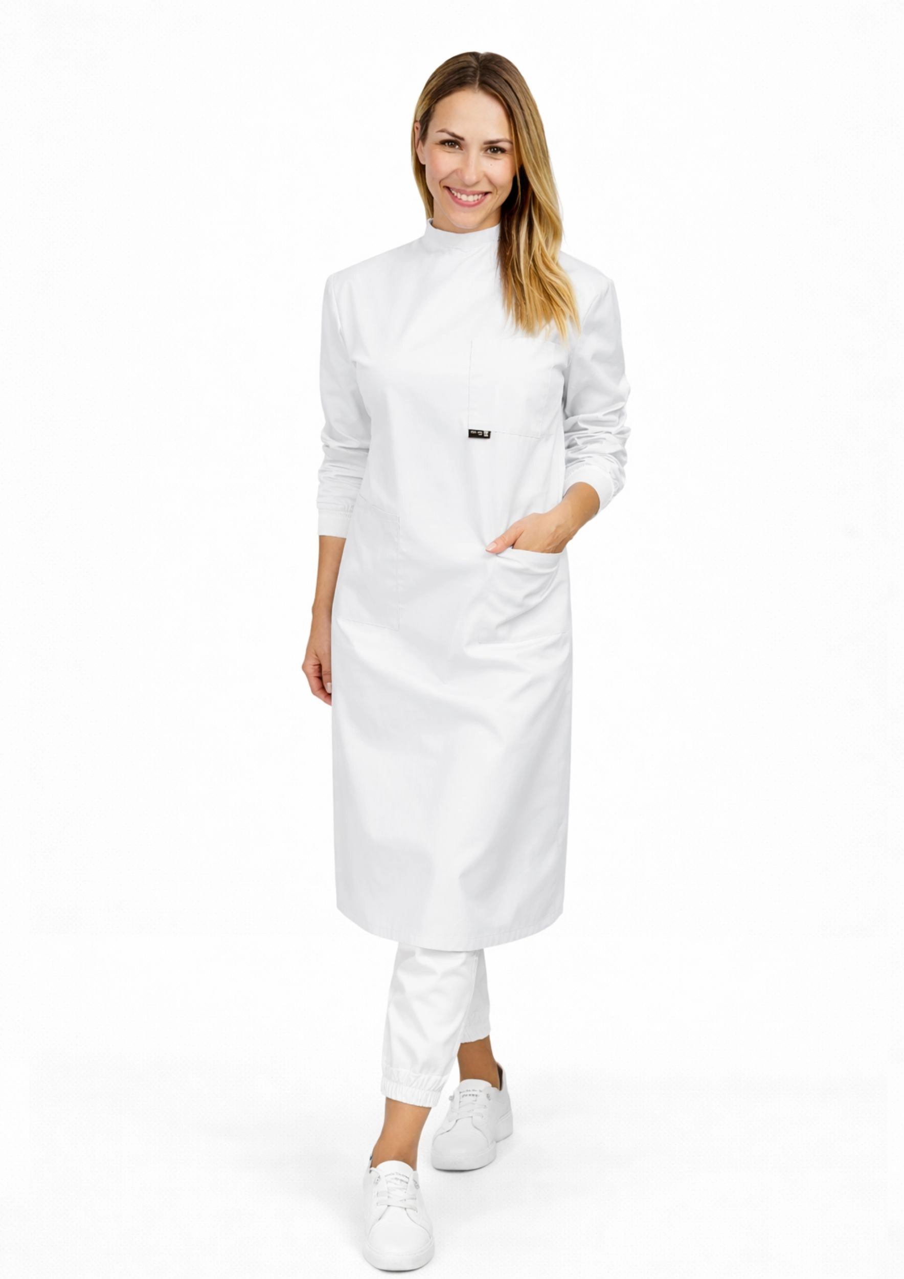 Klasyczny krój oraz solidne wykonanie sprawiają, że fartuch doskonale sprawdza się w codziennej pracy w placówkach medycznych, laboratoriach oraz prosektoriach.