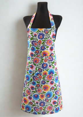 Fartuch wykonany jest z 100% polskiej bawełny posiadającej certyfikat OEKO-TEX® Standard 100. Oznacza to, że materiał jest bezpieczny dla skóry, wolny od szkodliwych substancji i odpowiedni do wielogodzinnego noszenia.