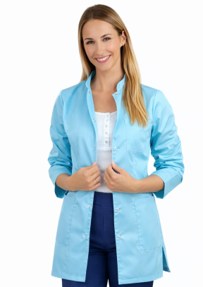 Fartuch Venus to doskonały wybór dla kobiet pracujących w służbie zdrowia, kosmetologii i farmacji. Wyróżnia się nowoczesnym, taliowanym krojem, który podkreśla sylwetkę, oraz wysokiej jakości tkaniną, odporną na częste pranie i intensywne użytkowanie.