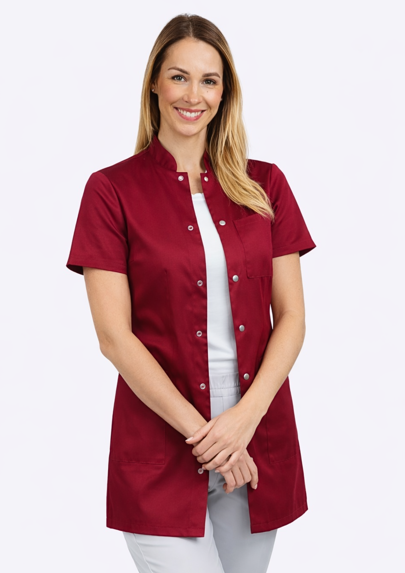 Fartuch Venus to połączenie nowoczesnego designu i funkcjonalności, idealny dla profesjonalistek w branży medycznej, kosmetycznej i farmaceutycznej. Krótki rękaw zapewnia swobodę ruchów, a taliowany krój podkreśla kobiecą sylwetkę, gwarantując elegancki wygląd przez cały dzień pracy.