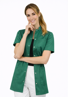 Fartuch Venus to połączenie nowoczesnego designu i funkcjonalności, idealny dla profesjonalistek w branży medycznej, kosmetycznej i farmaceutycznej. Krótki rękaw zapewnia swobodę ruchów, a taliowany krój podkreśla kobiecą sylwetkę, gwarantując elegancki wygląd przez cały dzień pracy.