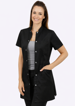 Fartuch Venus to połączenie nowoczesnego designu i funkcjonalności, idealny dla profesjonalistek w branży medycznej, kosmetycznej i farmaceutycznej. Krótki rękaw zapewnia swobodę ruchów, a taliowany krój podkreśla kobiecą sylwetkę, gwarantując elegancki wygląd przez cały dzień pracy.