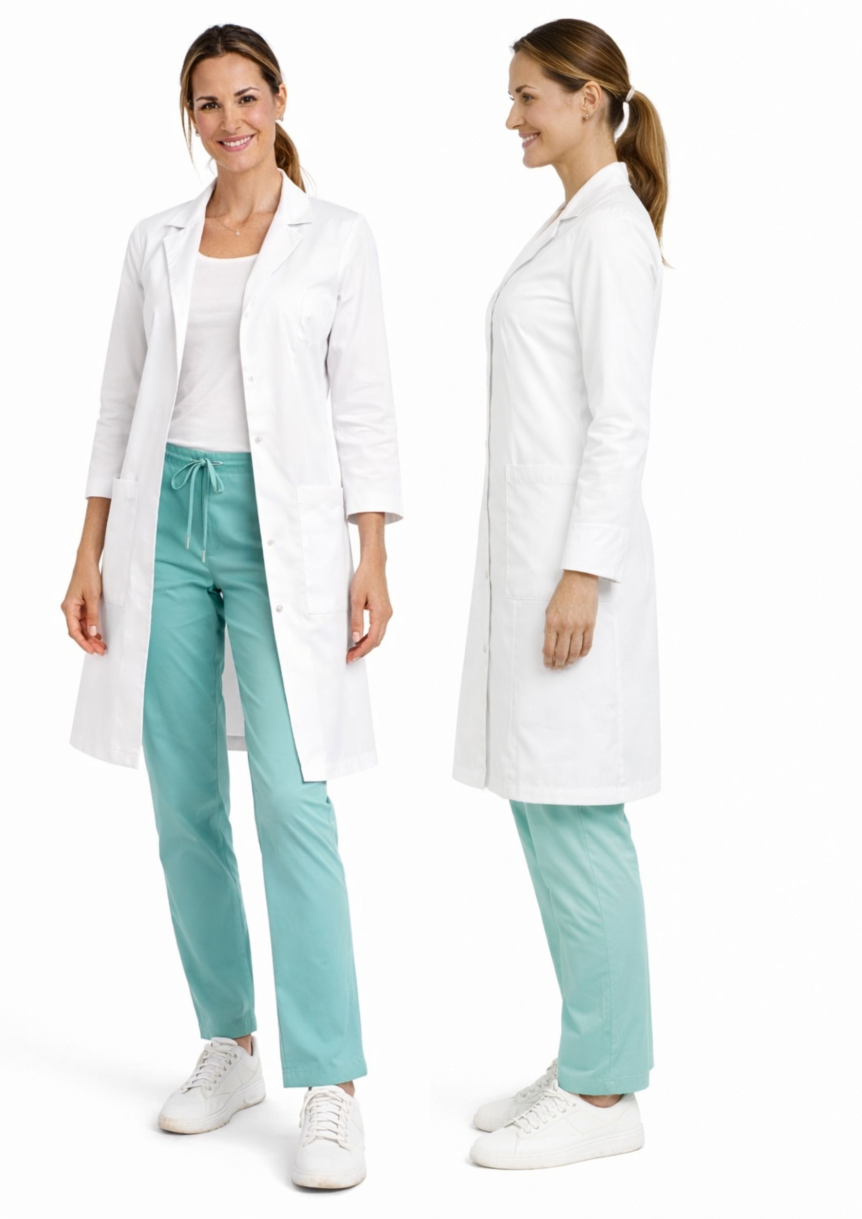 ✨Damski Fartuch Medyczny – Klasyczny, Biały, 100% Bawełna