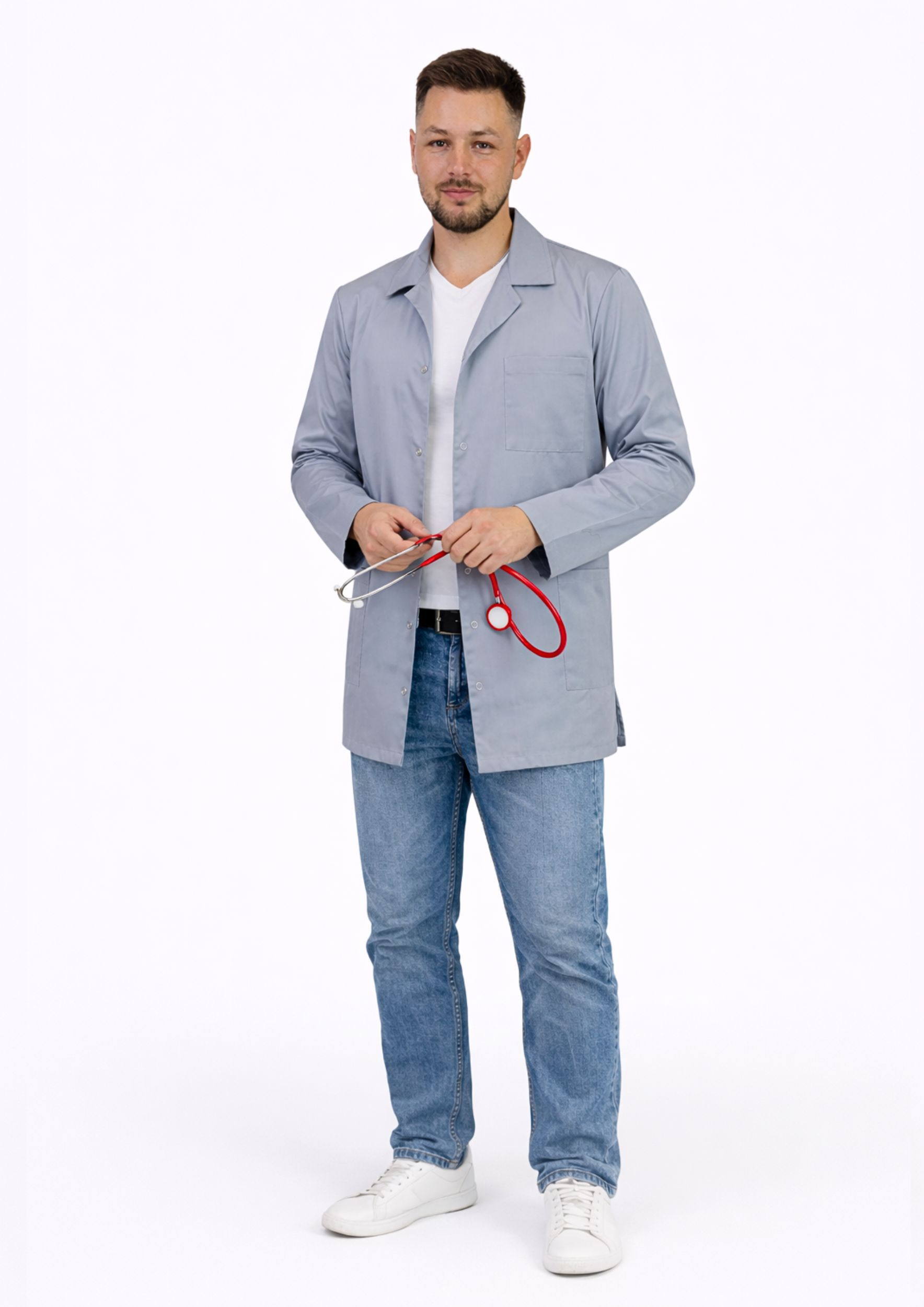 Fartuch Medyczny Męski Classic marki EUROSTYL to doskonały wybór dla lekarzy, farmaceutów, pielęgniarzy, ratowników medycznych, pracowników laboratorium oraz osób związanych z branżą medyczną oraz beauty!