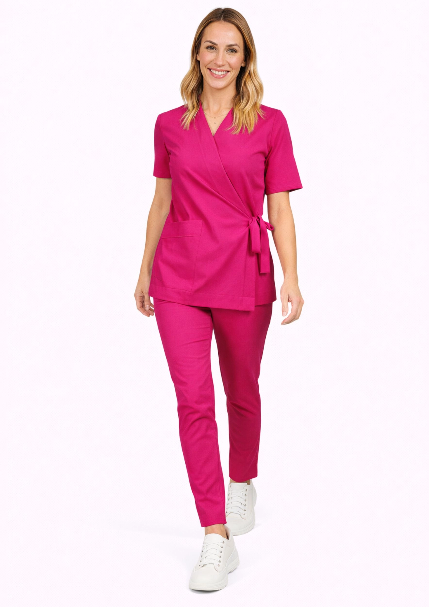 Ten starannie zaprojektowany zestaw spełni oczekiwania najbardziej wymagających profesjonalistów branży medycznej, kosmetycznej i stomatologicznej. Luksusowa, miękka tkanina, perfekcyjne dopasowanie i dbałość o każdy detal sprawiają, że jest to inwestycja w Twój komfort i profesjonalny wygląd.