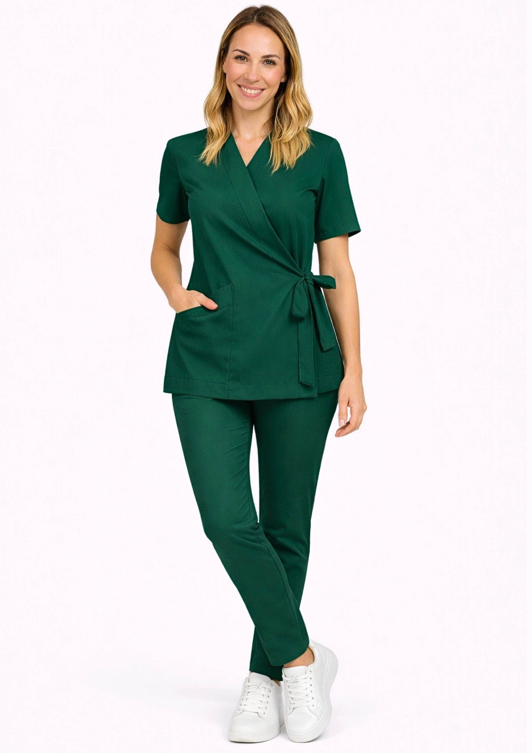 Ten starannie zaprojektowany zestaw spełni oczekiwania najbardziej wymagających profesjonalistów branży medycznej, kosmetycznej i stomatologicznej. Luksusowa, miękka tkanina, perfekcyjne dopasowanie i dbałość o każdy detal sprawiają, że jest to inwestycja w Twój komfort i profesjonalny wygląd.