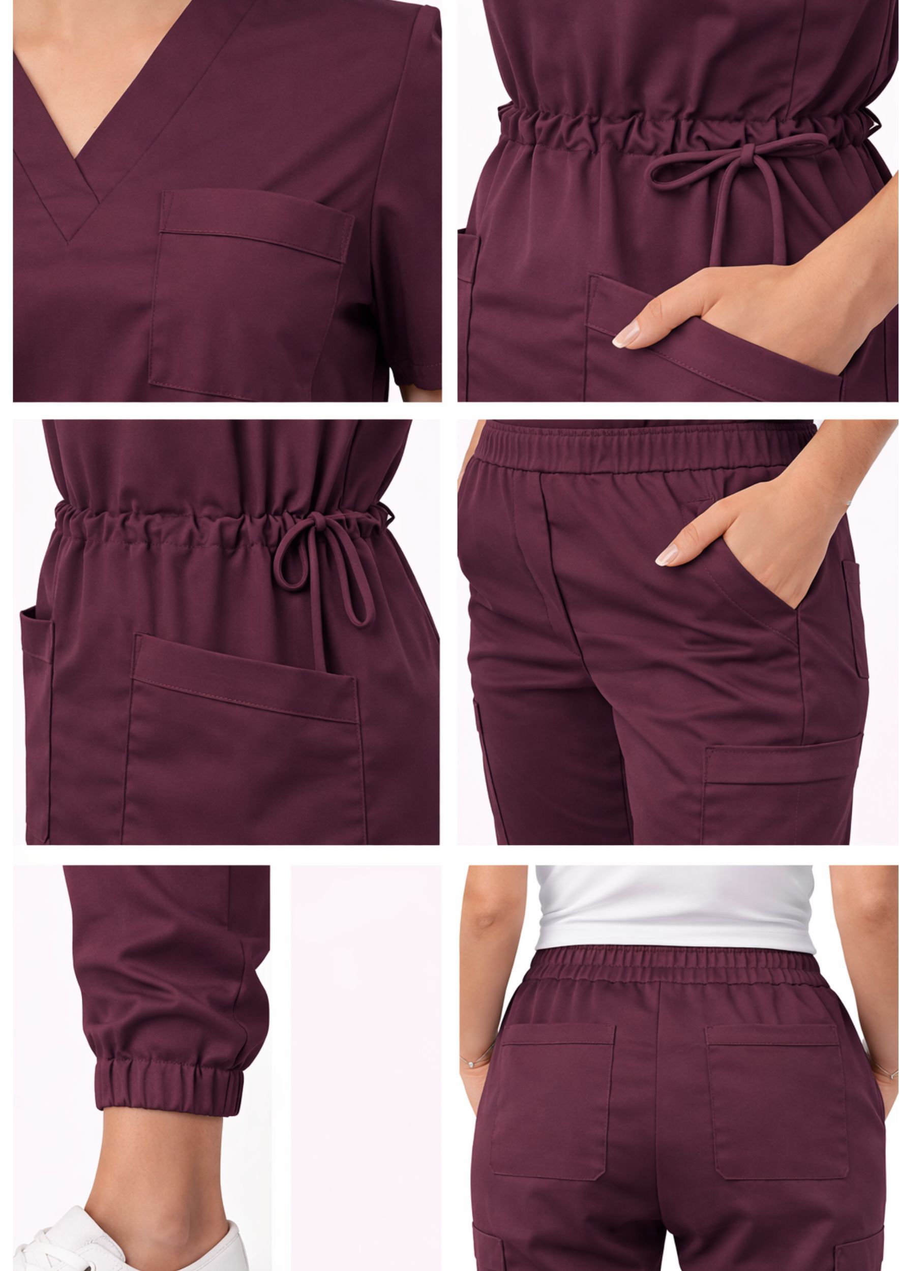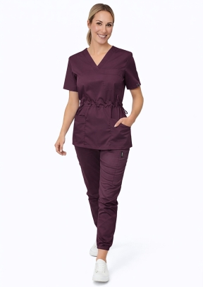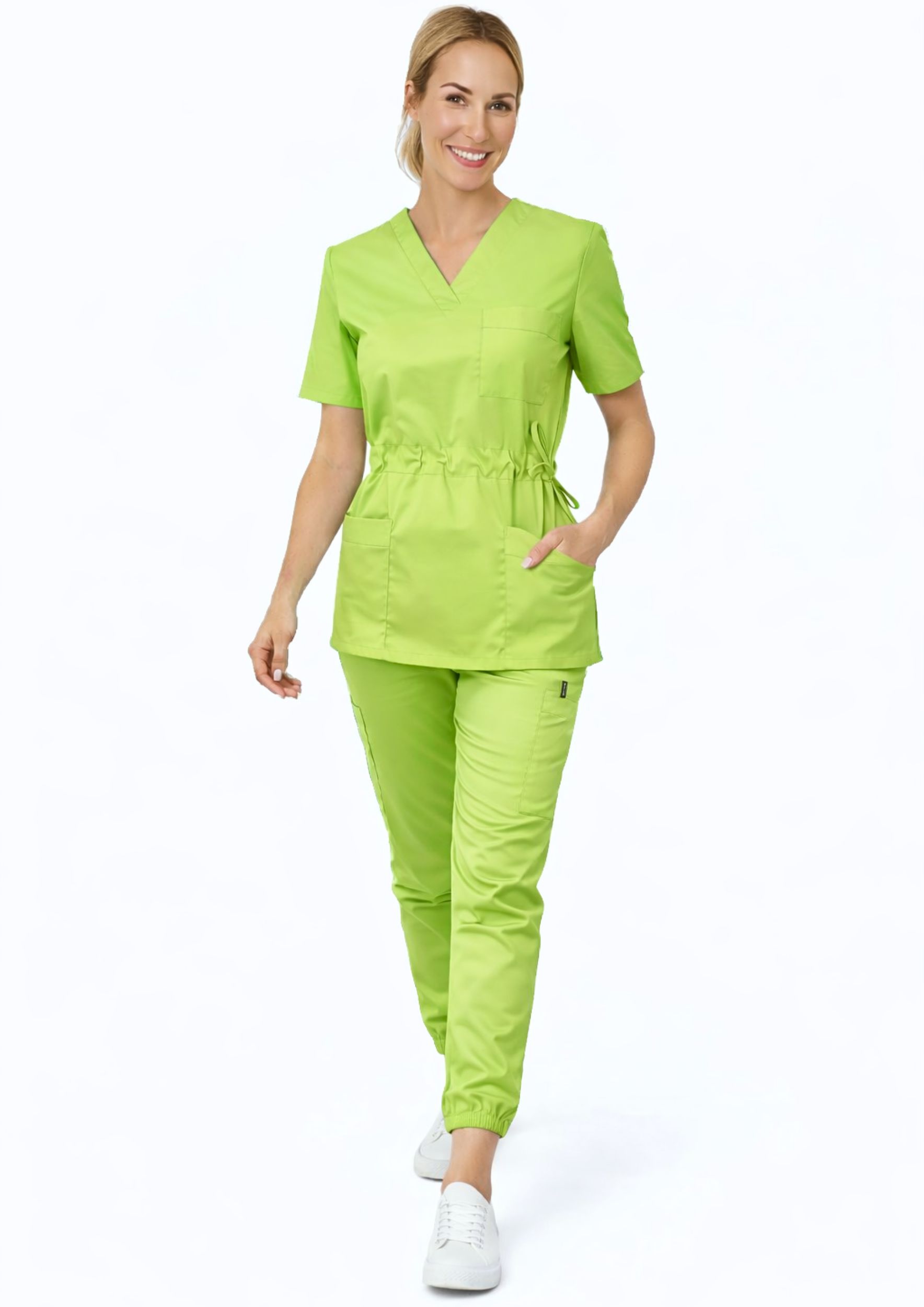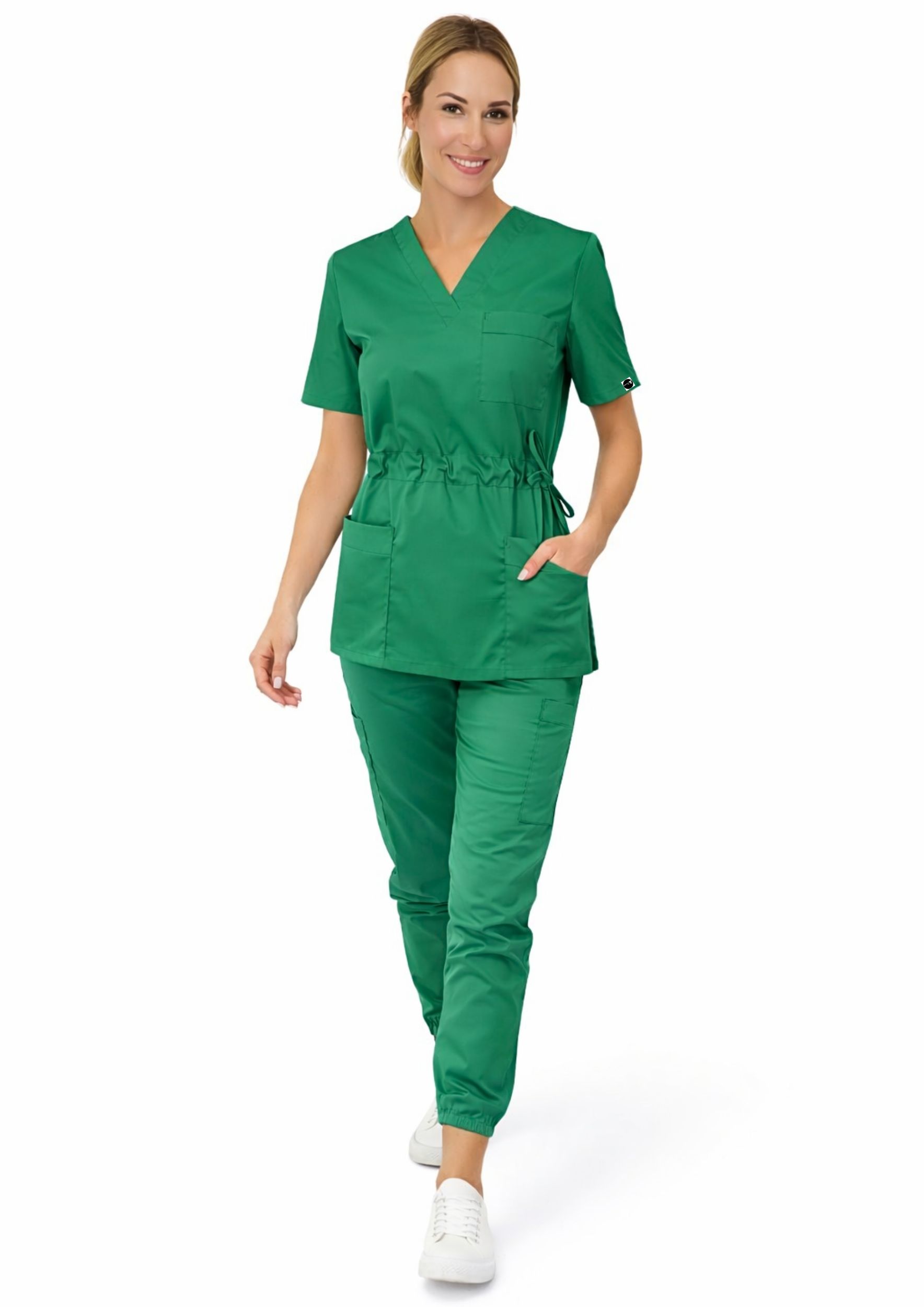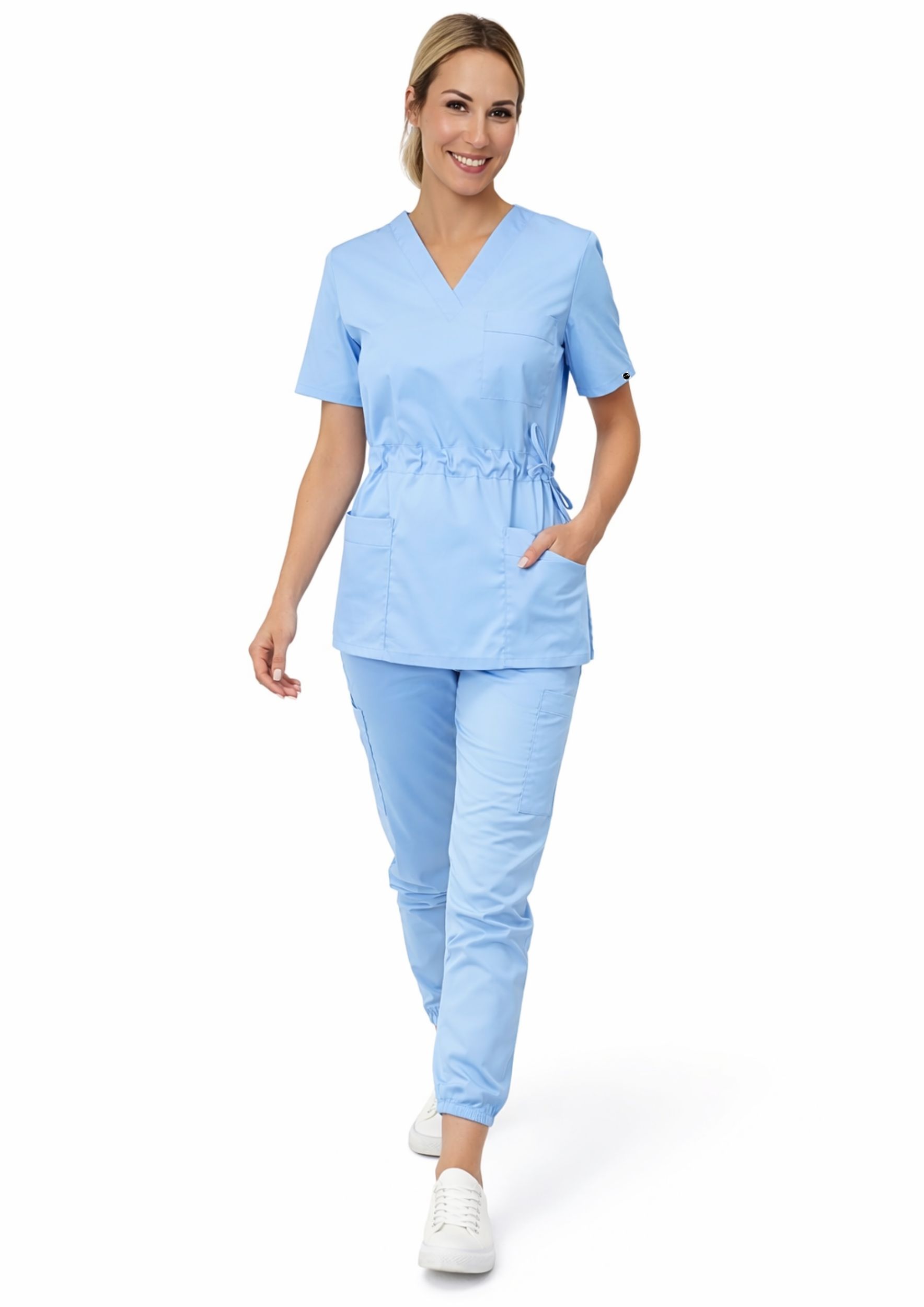 Damski komplet medyczny (bluza + spodnie jogger) zaprojektowany z myślą o tych, którzy cenią ponadczasową elegancję i sportowy styl. Idealny wybór dla lekarzy, pielęgniarek, stomatologów, weterynarzy, kosmetologów i pracowników branży beauty.