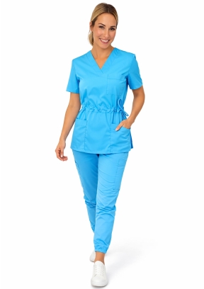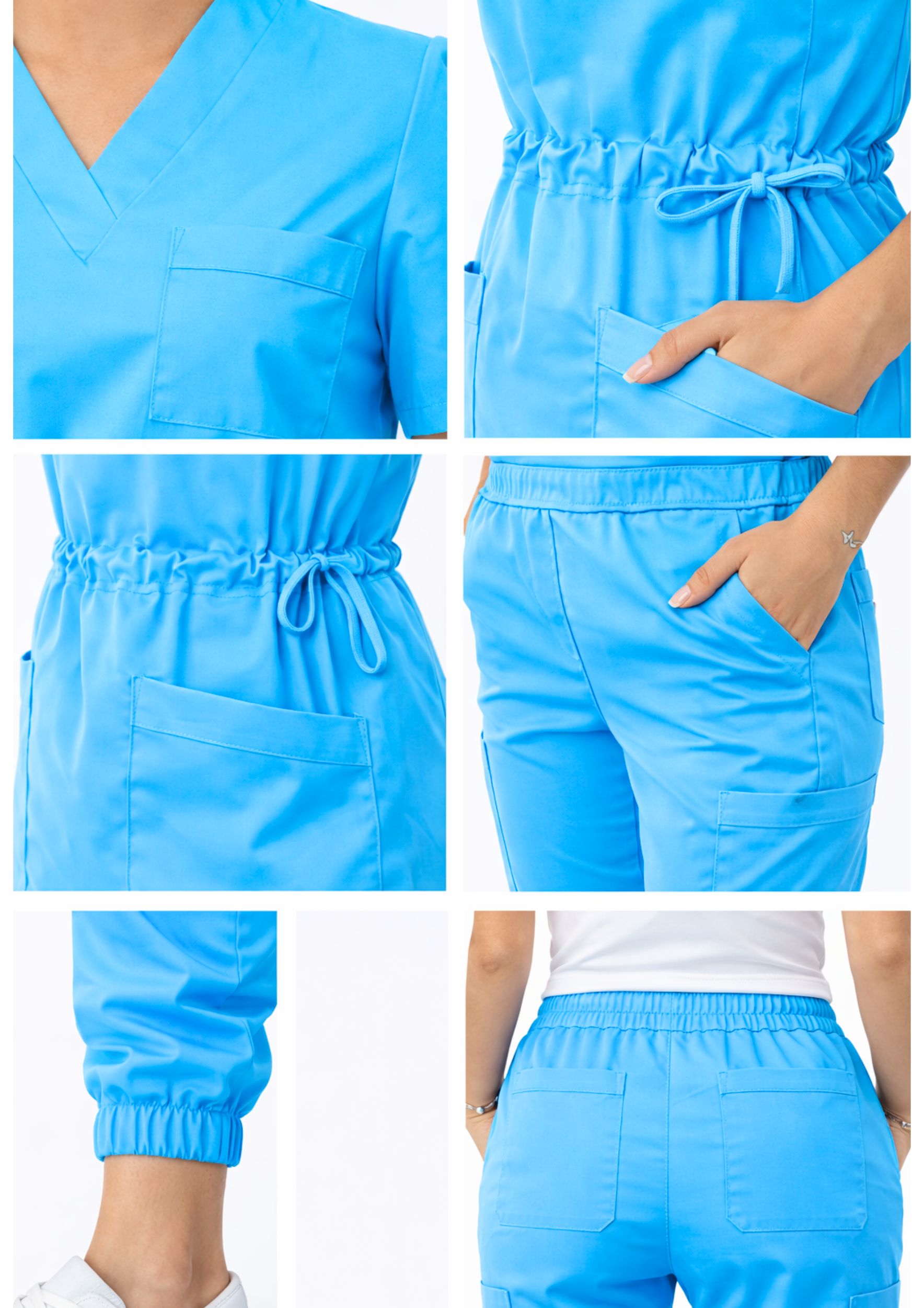 Damski komplet medyczny (bluza + spodnie jogger) zaprojektowany z myślą o tych, którzy cenią ponadczasową elegancję i sportowy styl. Idealny wybór dla lekarzy, pielęgniarek, stomatologów, weterynarzy, kosmetologów i pracowników branży beauty.