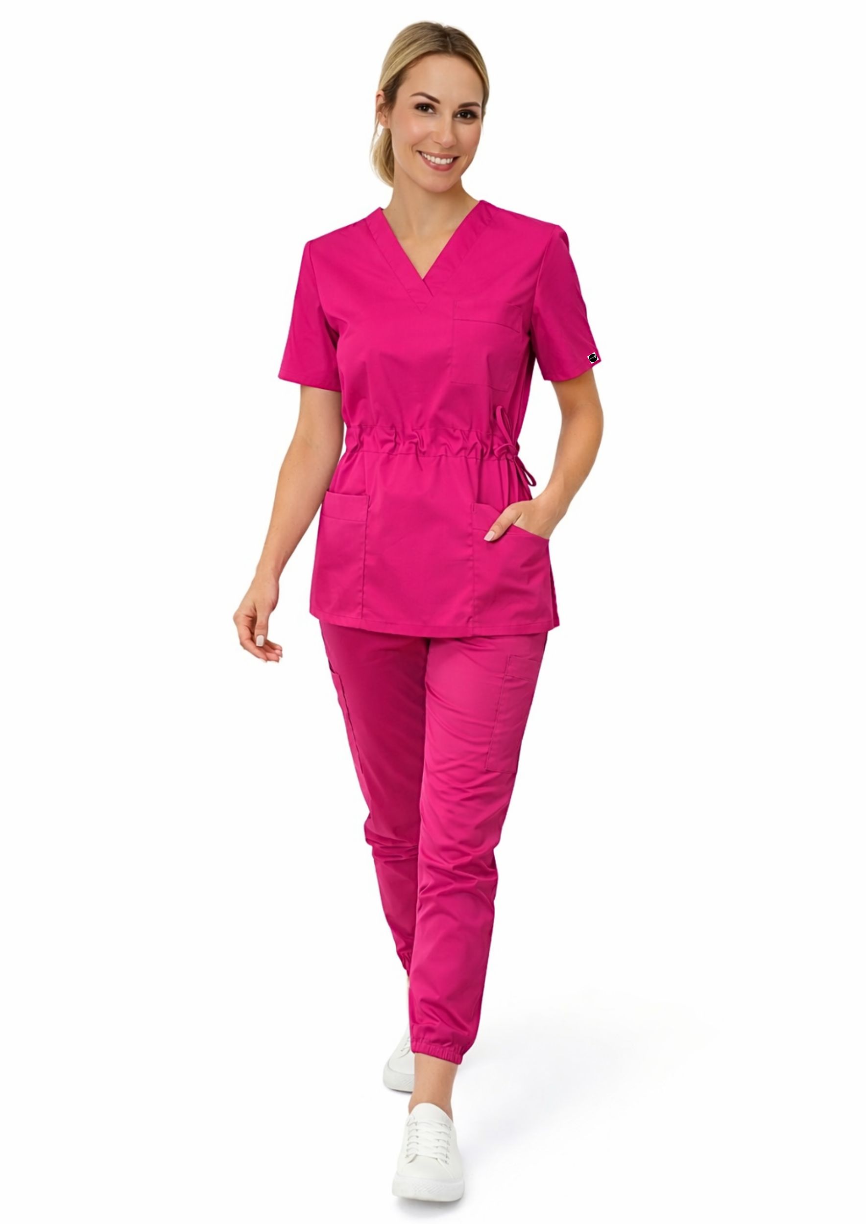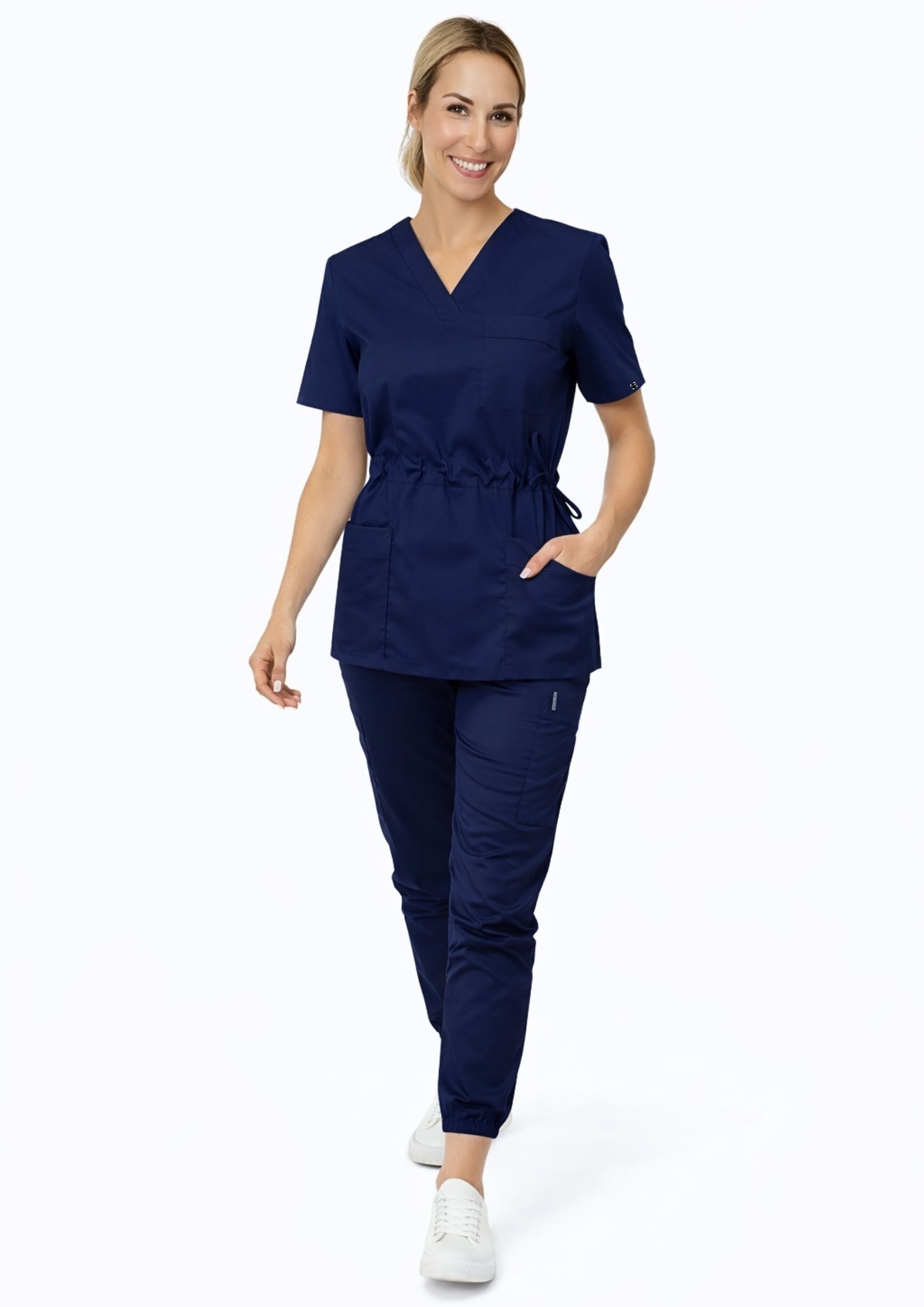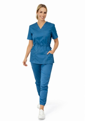 Damski komplet medyczny (bluza + spodnie jogger) zaprojektowany z myślą o tych, którzy cenią ponadczasową elegancję i sportowy styl. Idealny wybór dla lekarzy, pielęgniarek, stomatologów, weterynarzy, kosmetologów i pracowników branży beauty.