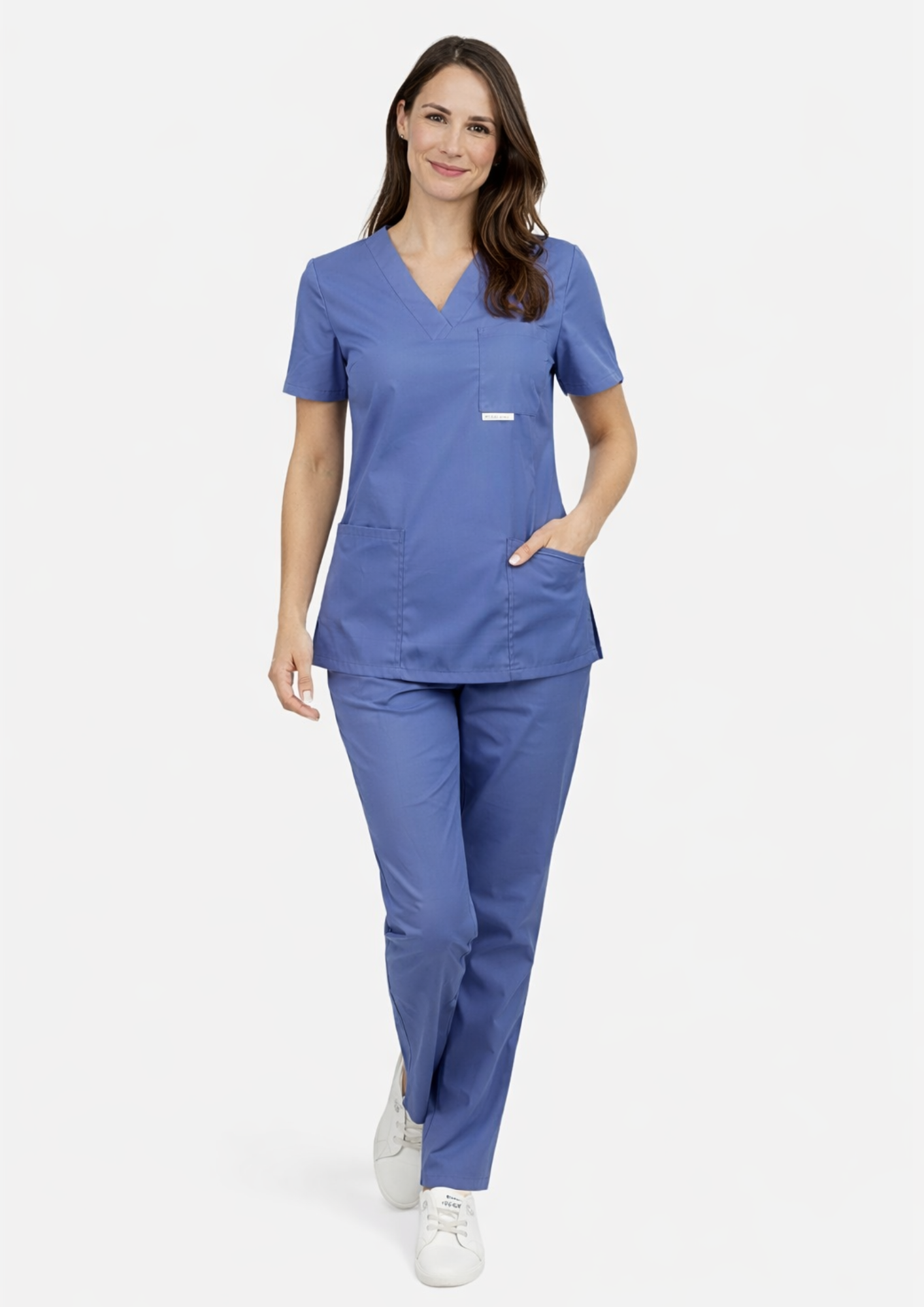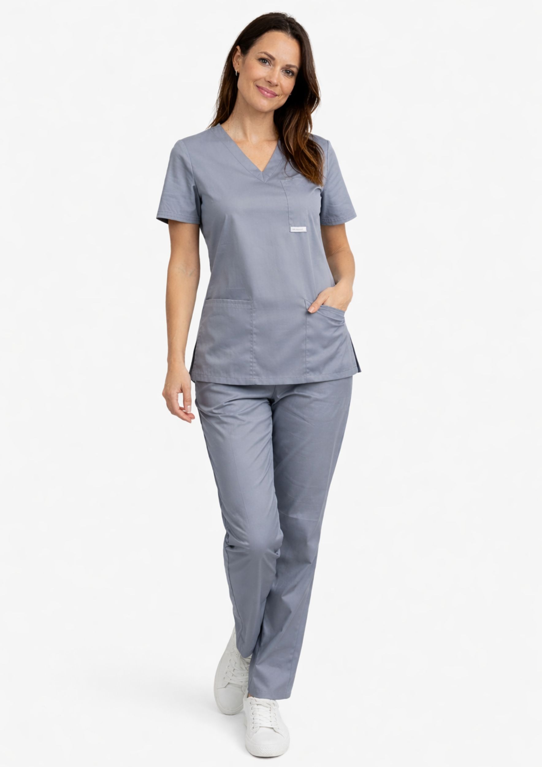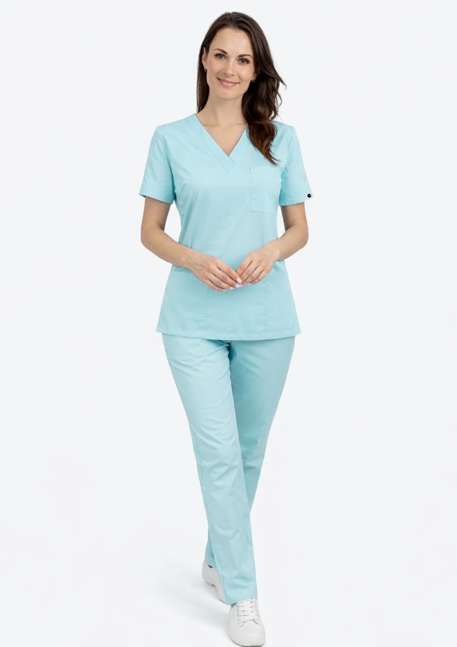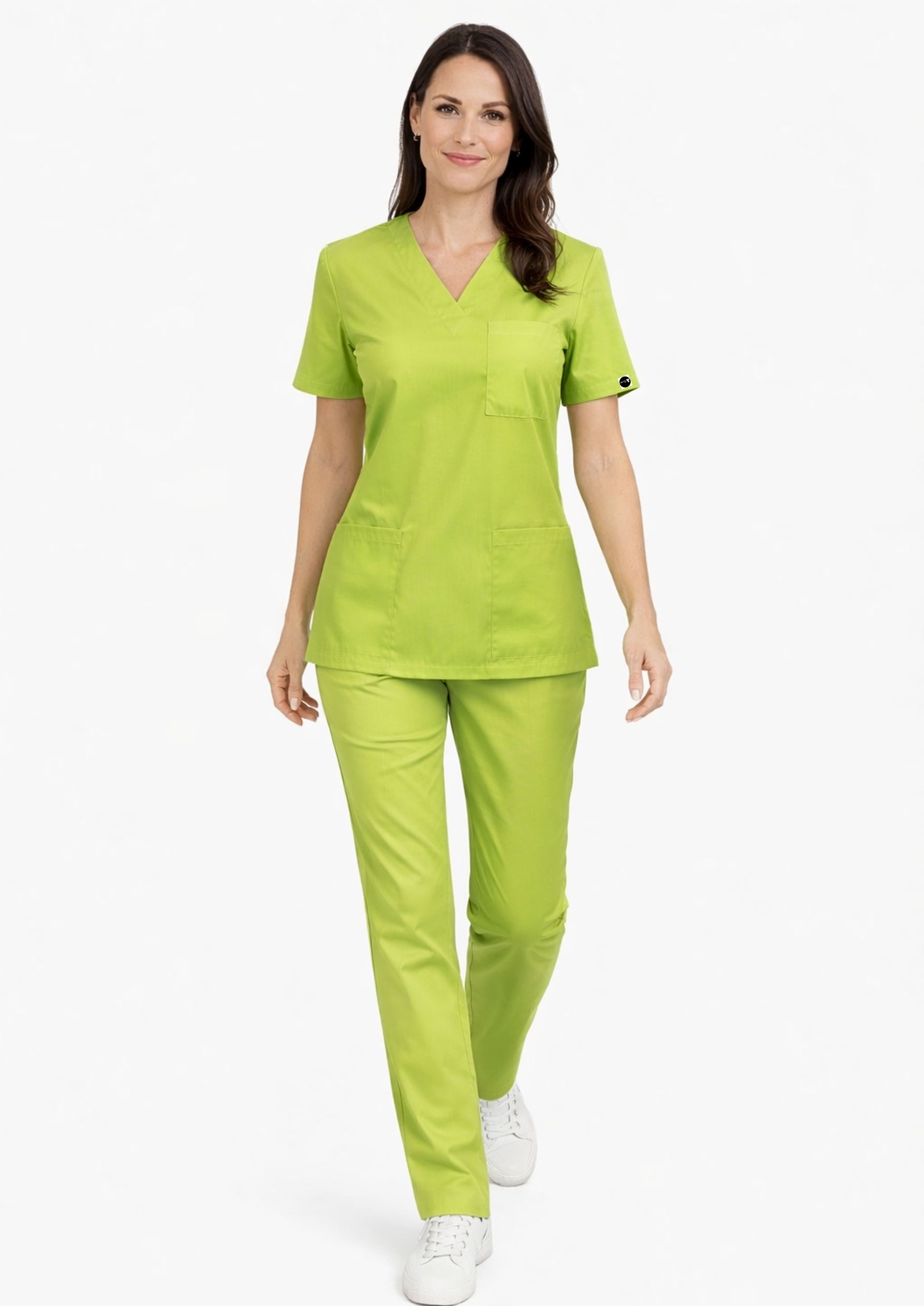Lekka, elastyczna i przewiewna tkanina zapewnia maksymalny komfort nawet podczas długich zmian! Komplet wygląda świetnie przez cały dzień.