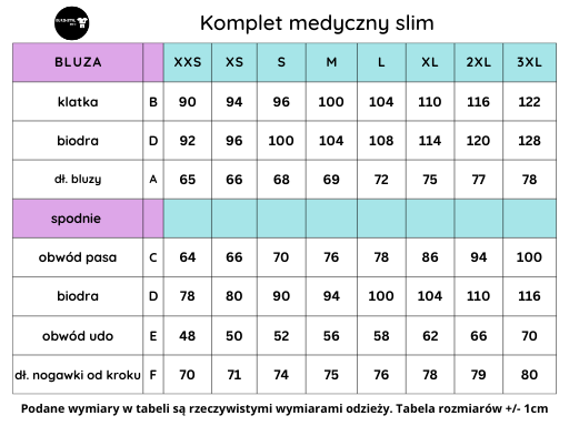 Zestaw zawiera: Bluza medyczna damska Spodnie medyczne typu rurki