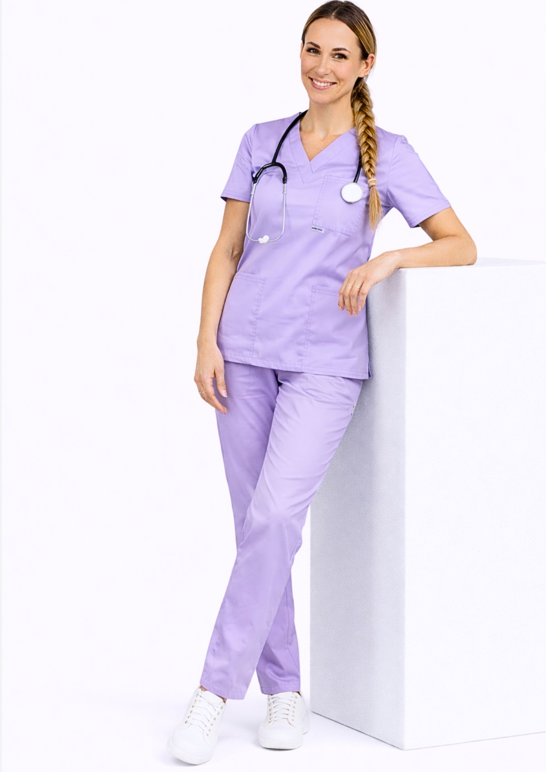 Dla kogo? Komplet stworzony dla pielęgniarek, lekarek, farmaceutek, fizjoterapeutek, stomatolożek, kosmetolożek, masażystek i wszystkich profesjonalistek medycznych, które każdego dnia dbają o innych i chcą czuć się komfortowo w pracy.