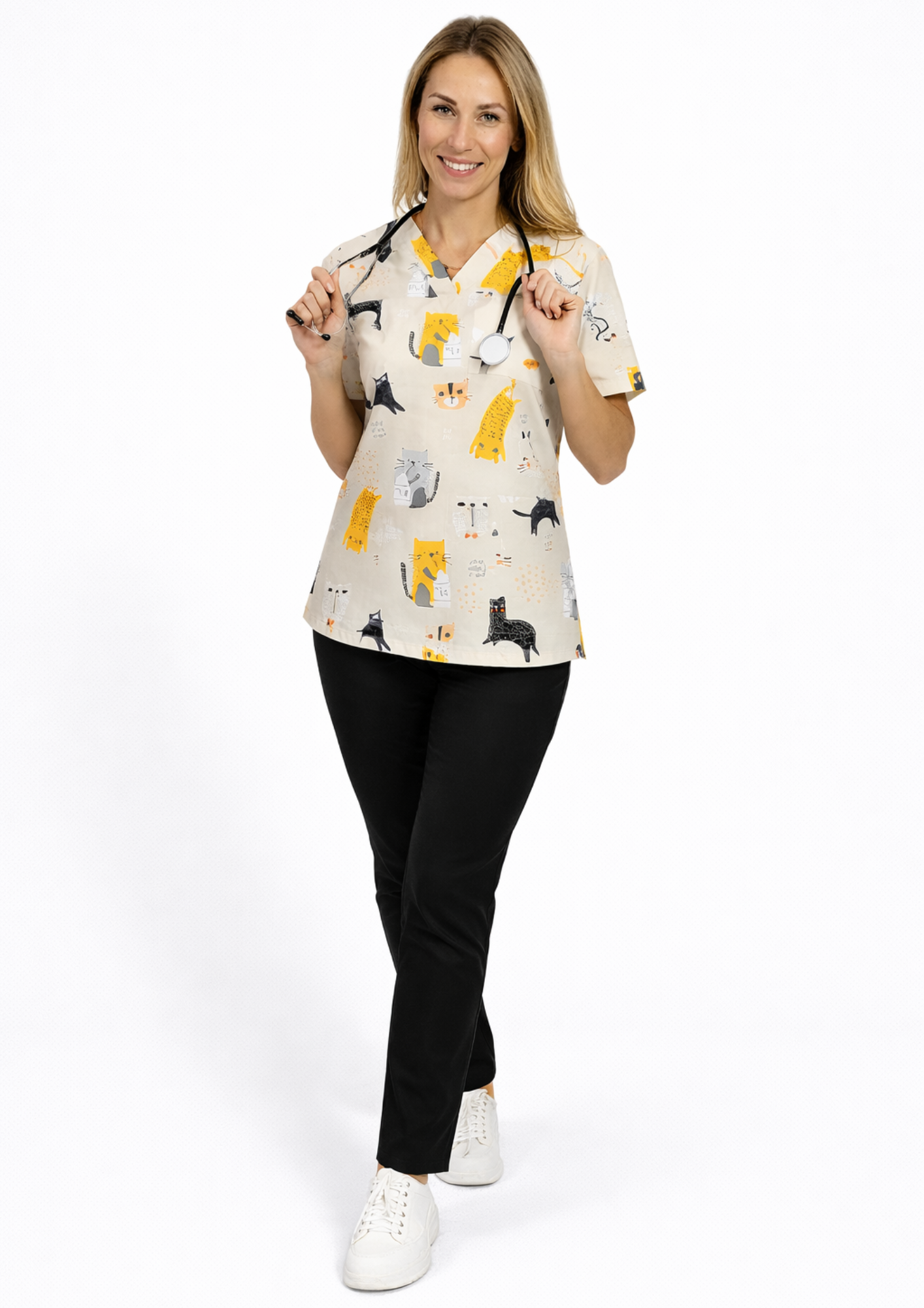 Komplet medyczny damski Beżowe Koty– styl, wygoda, profesjonalizm!