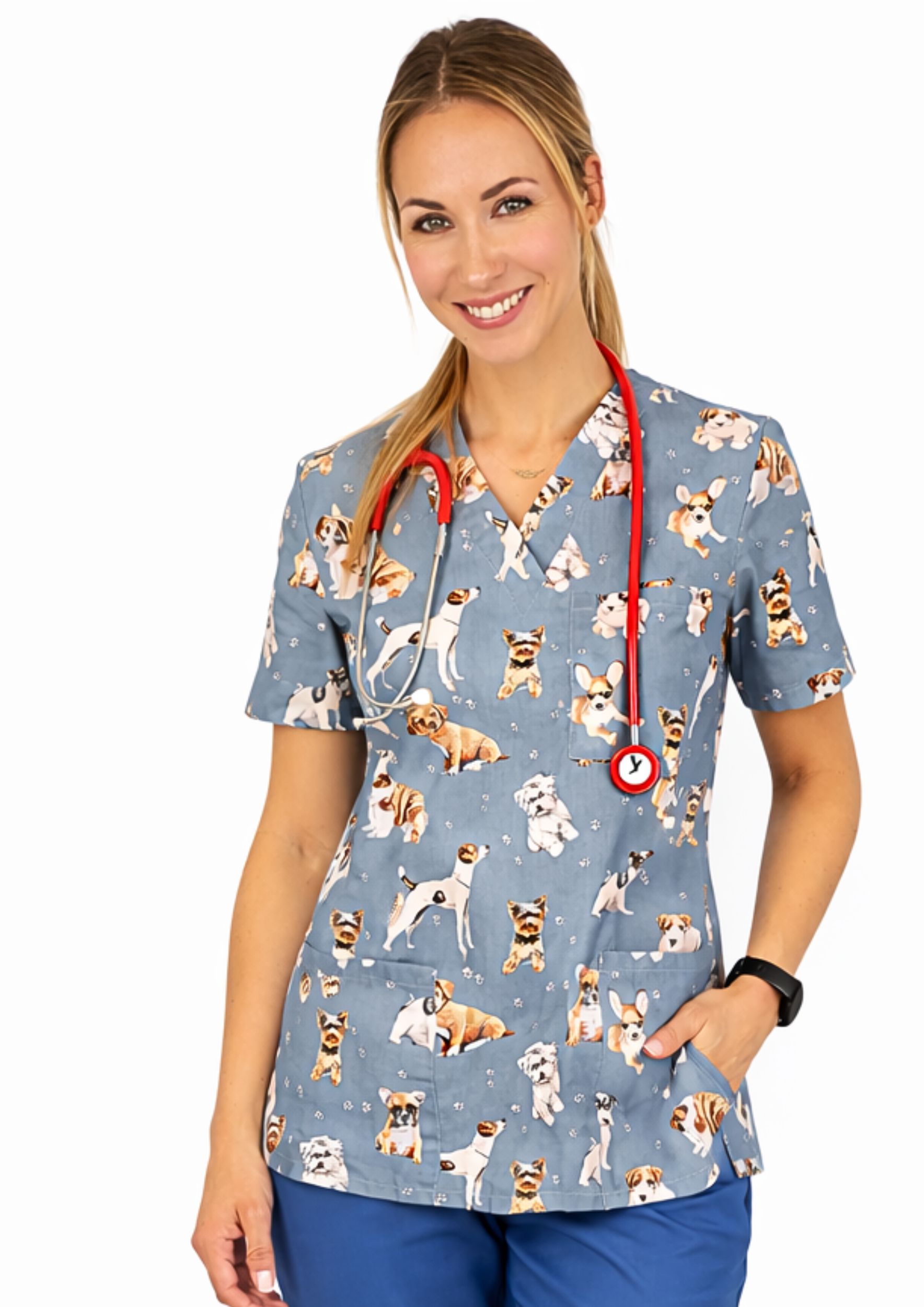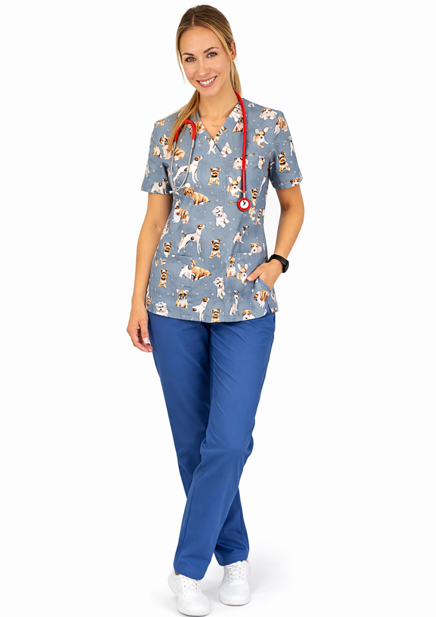Komplet medyczny damski Grafitowe Pieski – styl, wygoda, profesjonalizm!