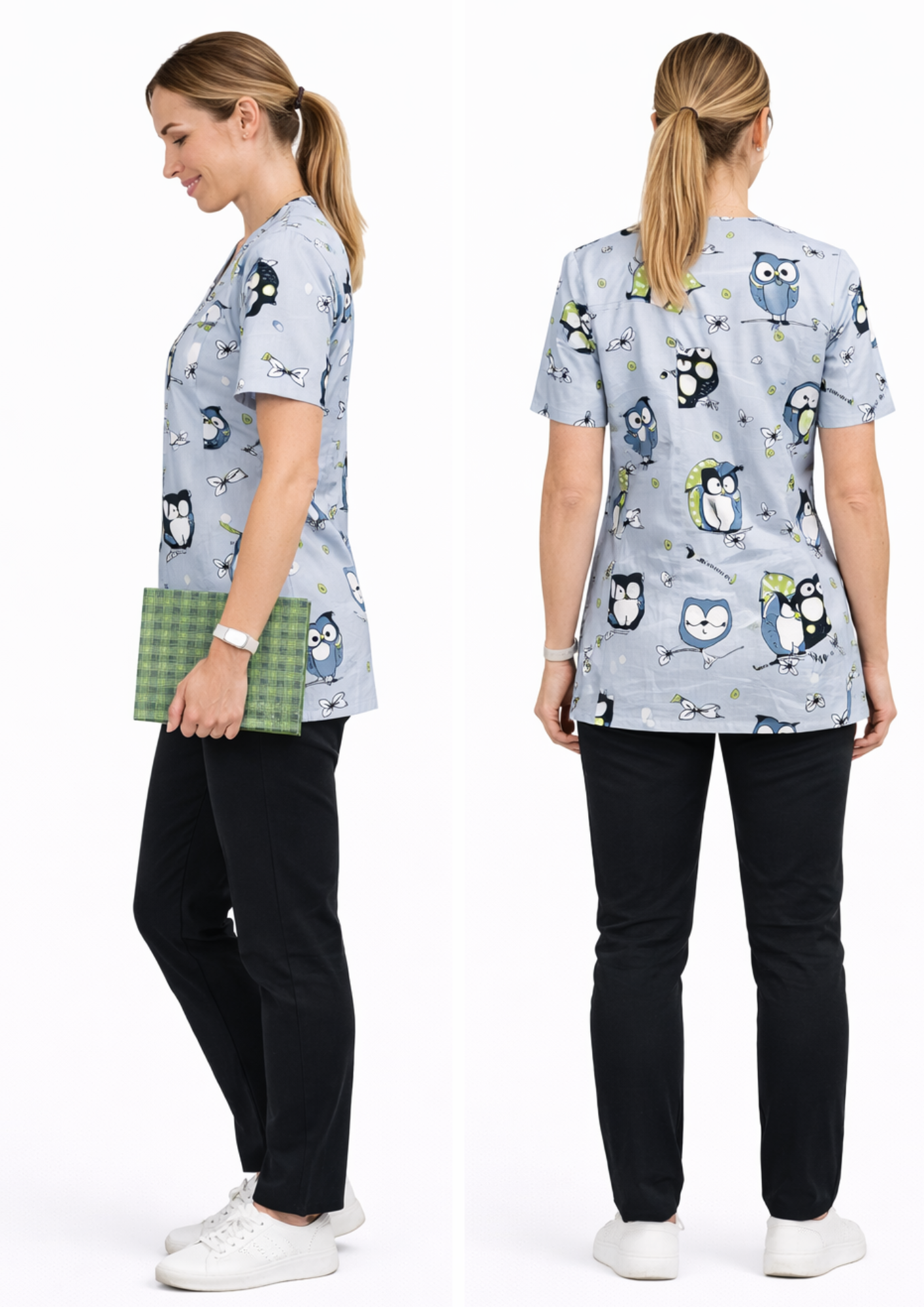 Komplet medyczny damski Wesołe Sowy – styl, wygoda, profesjonalizm!
