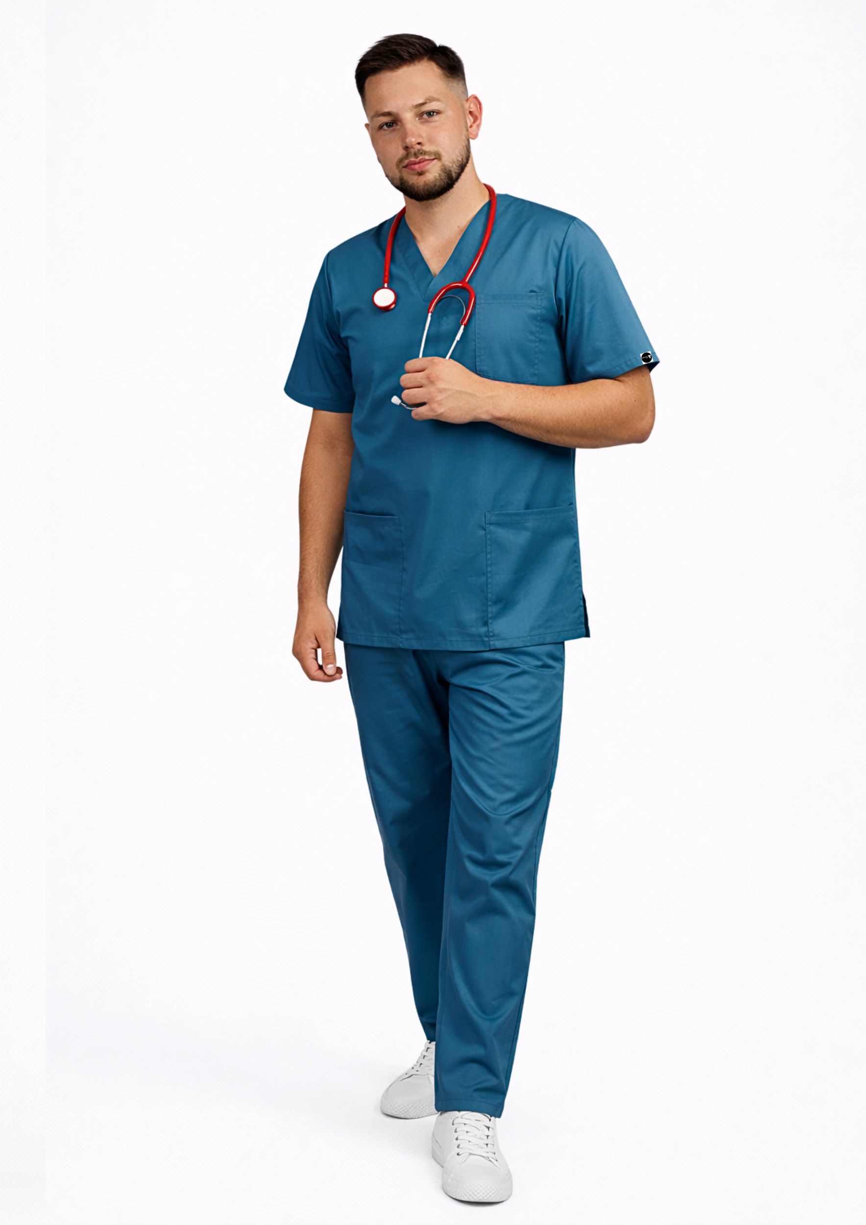 Ten klasyczny męski komplet medyczny to doskonały wybór dla lekarzy, pielęgniarzy, fizjoterapeutów, weterynarzy i innych pracowników medycznych.