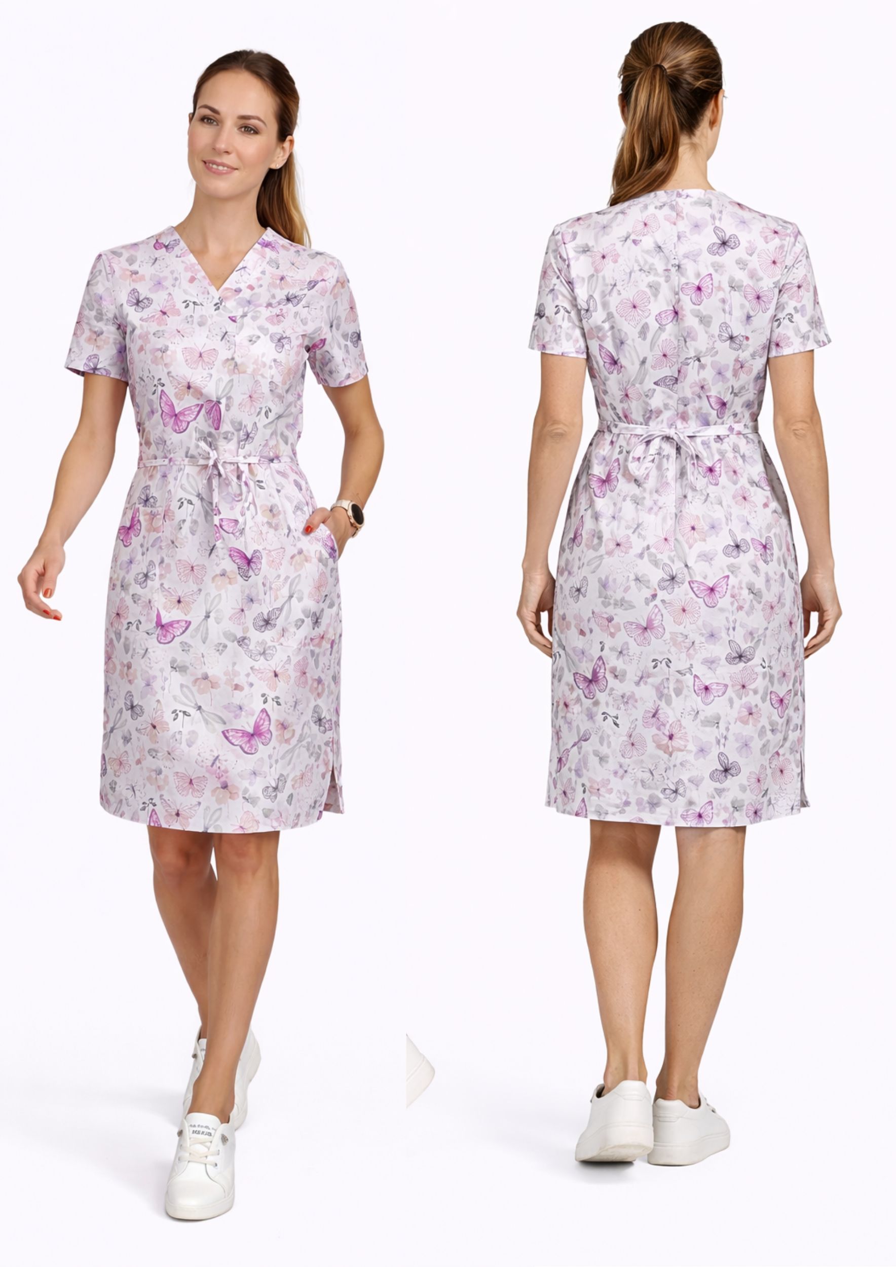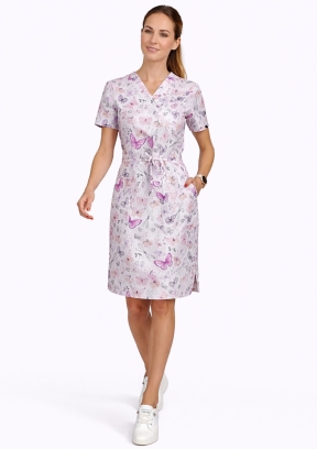 Dzięki klasycznemu krojowi z taliowaniem, sukienka nie tylko zapewnia komfort, ale też świetnie się prezentuje – zarówno w szpitalu, przychodni, jak i w gabinecie prywatnym.