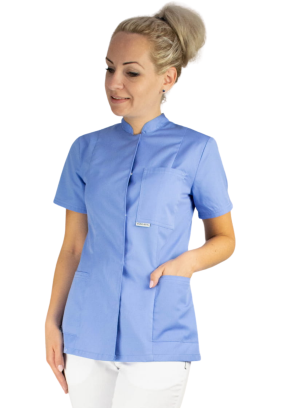 Bardzo wygodny żakiet medyczny wykończony stójką. Taliowany.