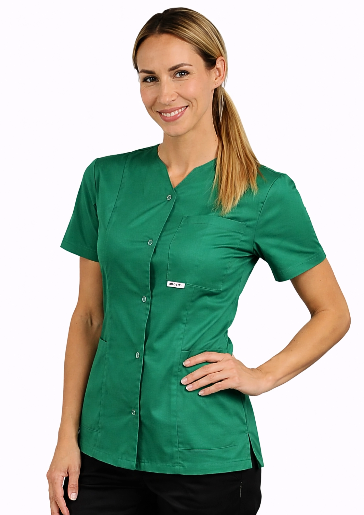 Idealny dla: lekarzy, kosmetyczek, fizjoterapeutek i pracownic branży beauty, które chcą wyglądać elegancko, zachowując pełną swobodę ruchów.