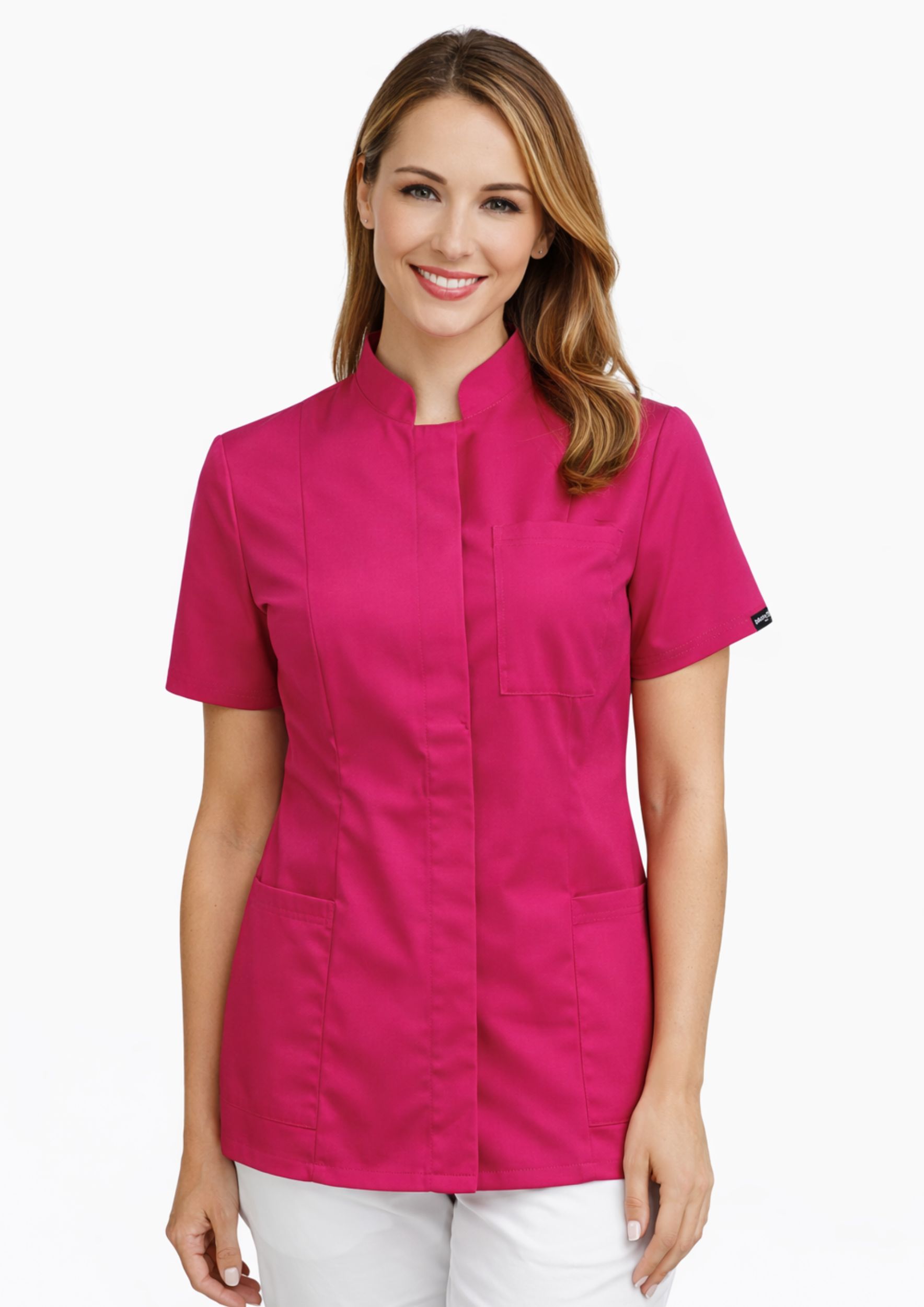 Nasz dopasowany, taliowany żakiet damski to idealne rozwiązanie dla profesjonalistek z branży medycznej, kosmetycznej i pokrewnych. Dzięki klasycznemu krojowi i wysokiej jakości materiałom zapewnia elegancki wygląd oraz komfort noszenia przez cały dzień pracy.