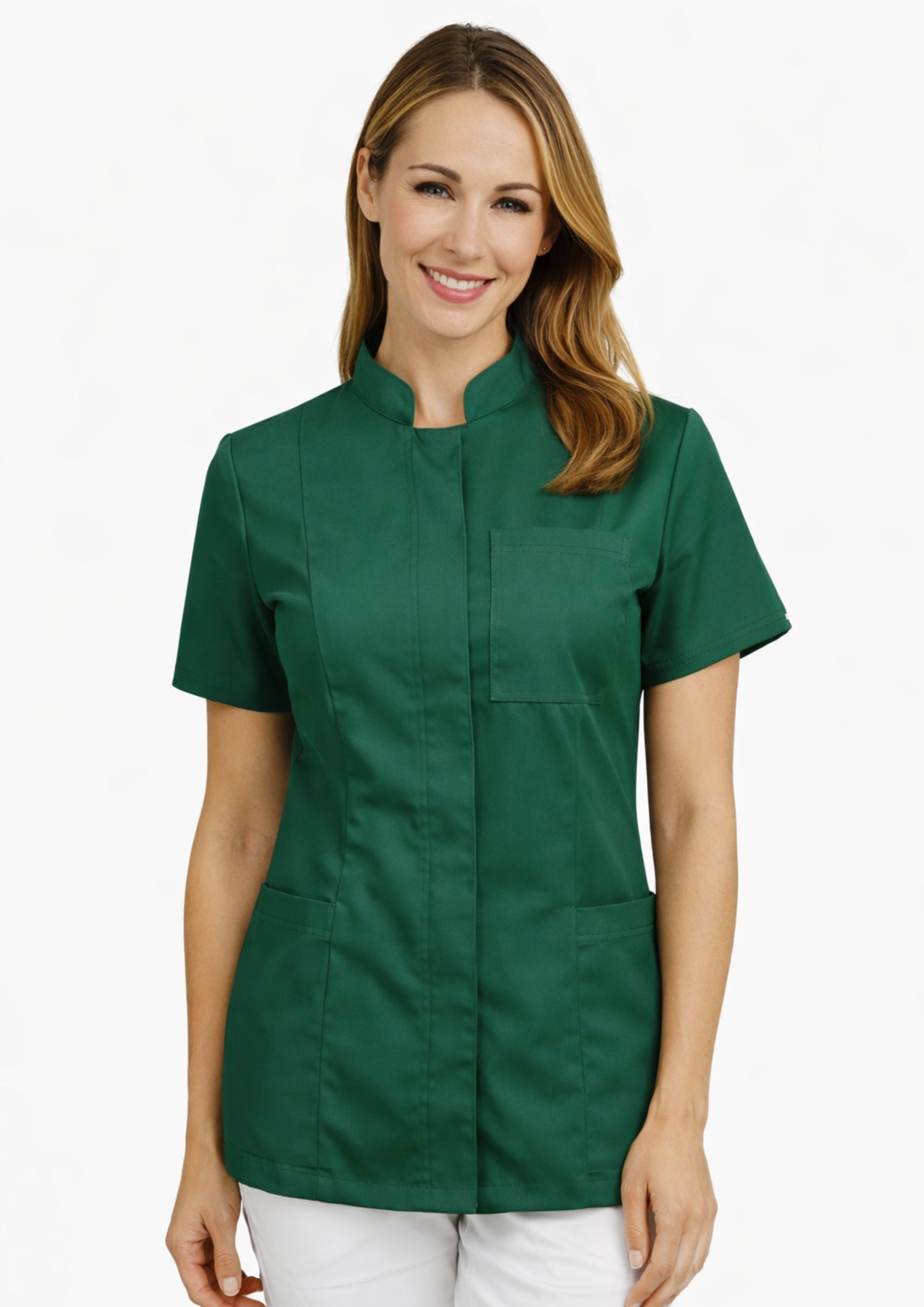 Nasz dopasowany, taliowany żakiet damski to idealne rozwiązanie dla profesjonalistek z branży medycznej, kosmetycznej i pokrewnych. Dzięki klasycznemu krojowi i wysokiej jakości materiałom zapewnia elegancki wygląd oraz komfort noszenia przez cały dzień pracy.