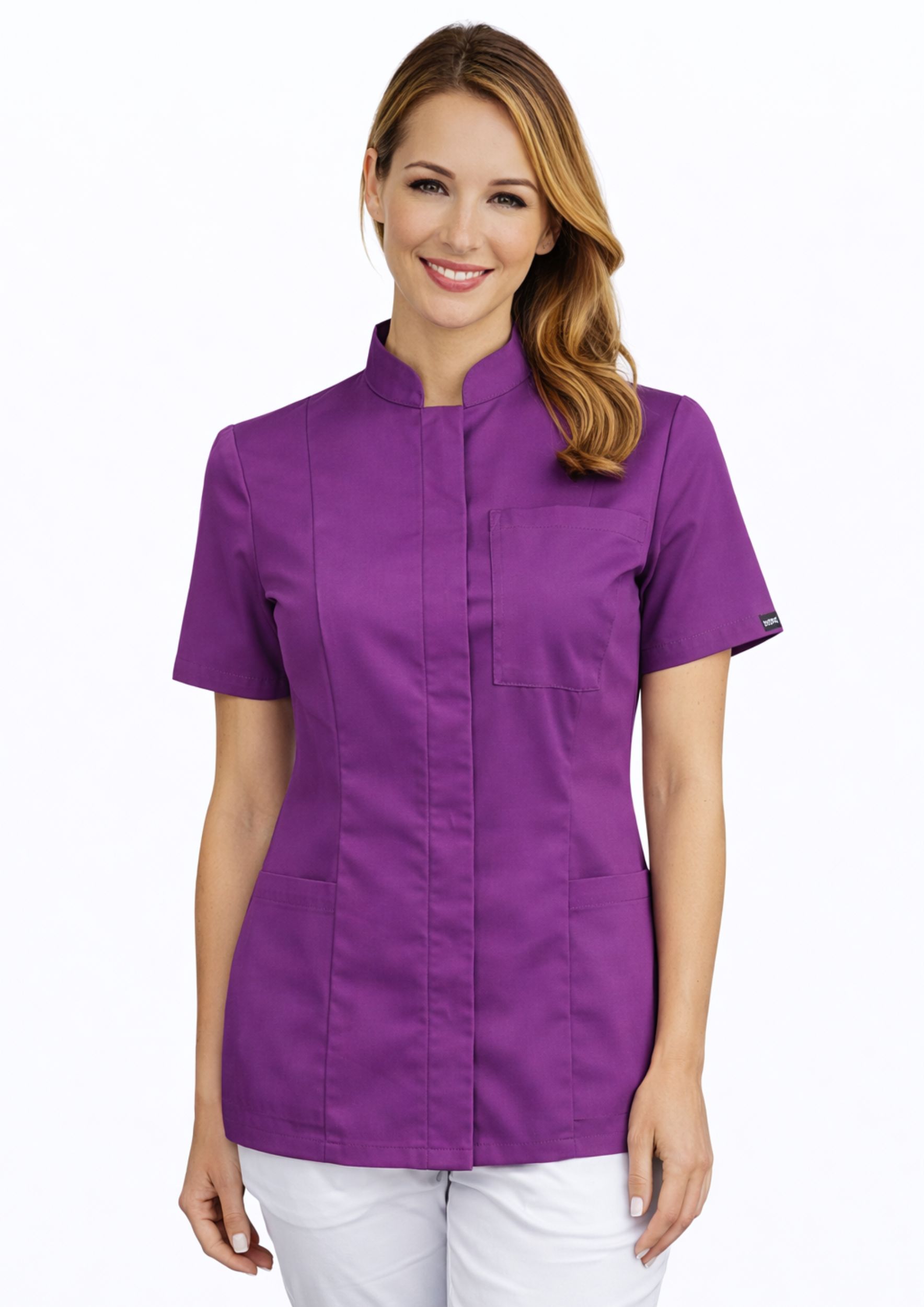 Nasz dopasowany, taliowany żakiet damski to idealne rozwiązanie dla profesjonalistek z branży medycznej, kosmetycznej i pokrewnych. Dzięki klasycznemu krojowi i wysokiej jakości materiałom zapewnia elegancki wygląd oraz komfort noszenia przez cały dzień pracy.