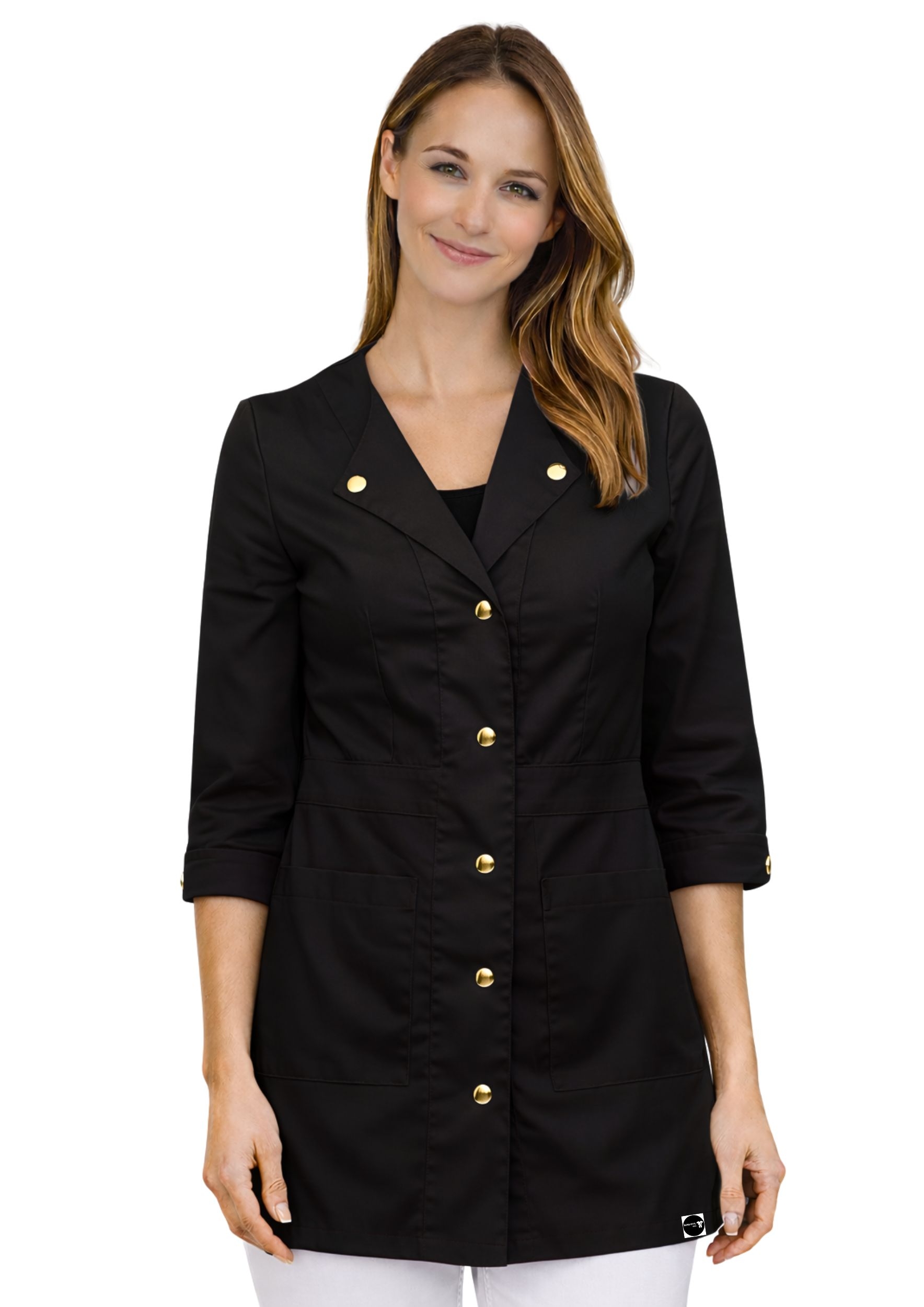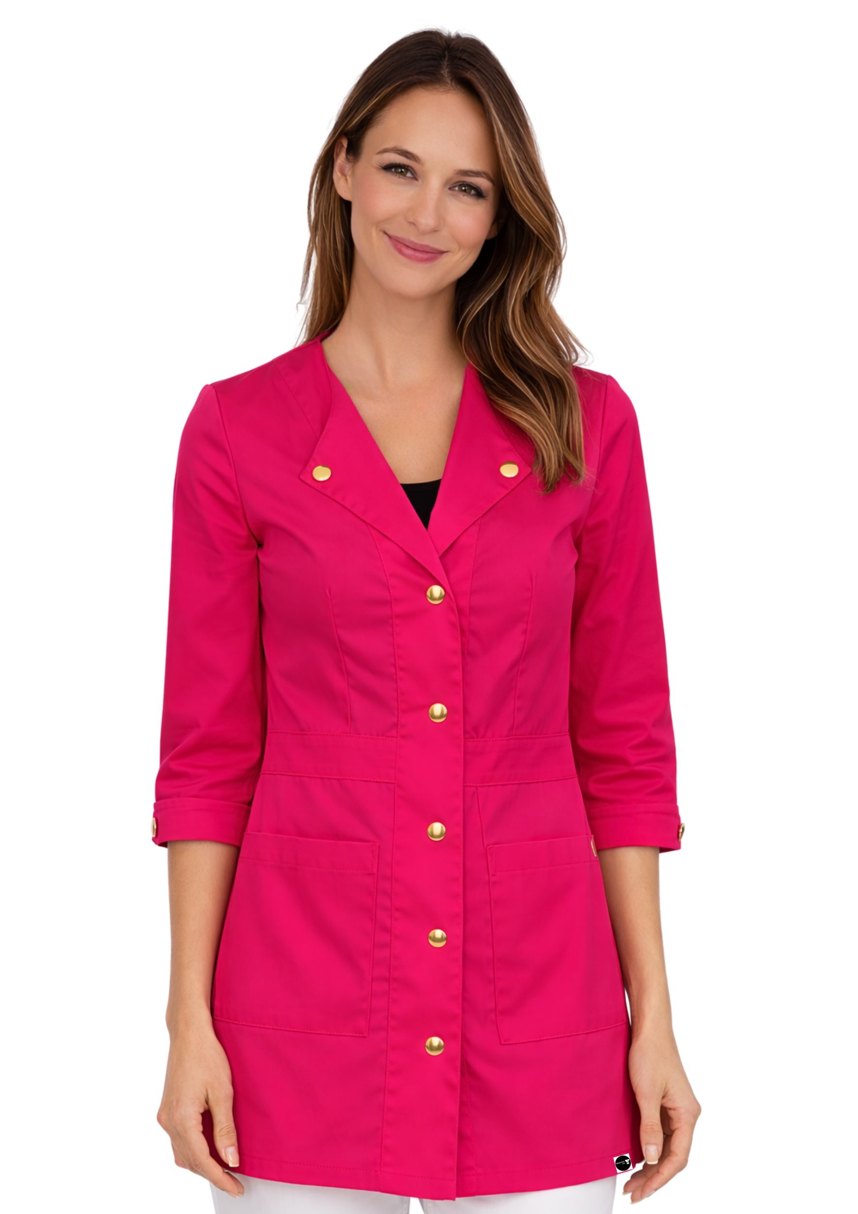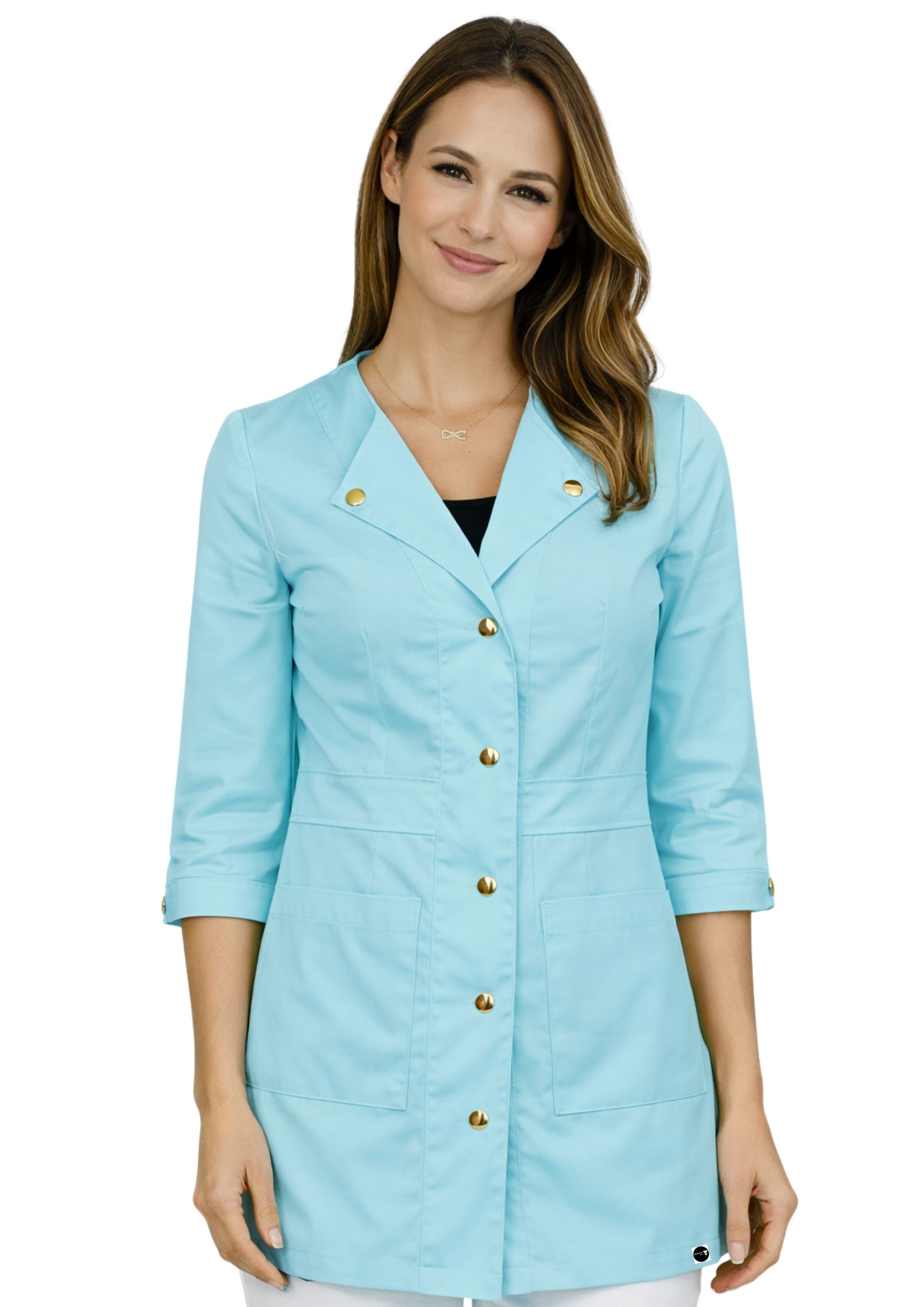 - Rękaw ¾ – wygoda w pracy medycznej i kosmetycznej, swoboda ruchów.
