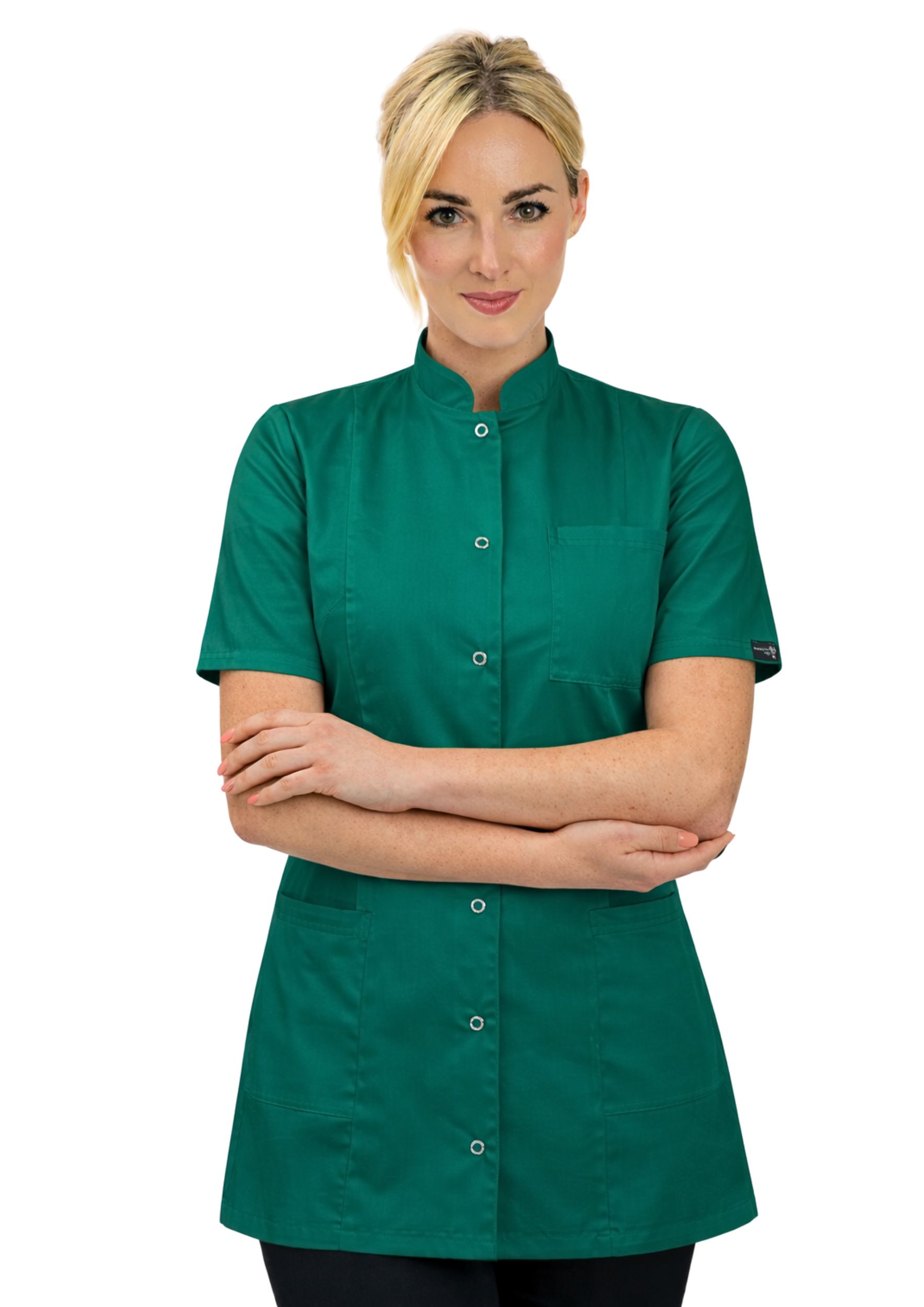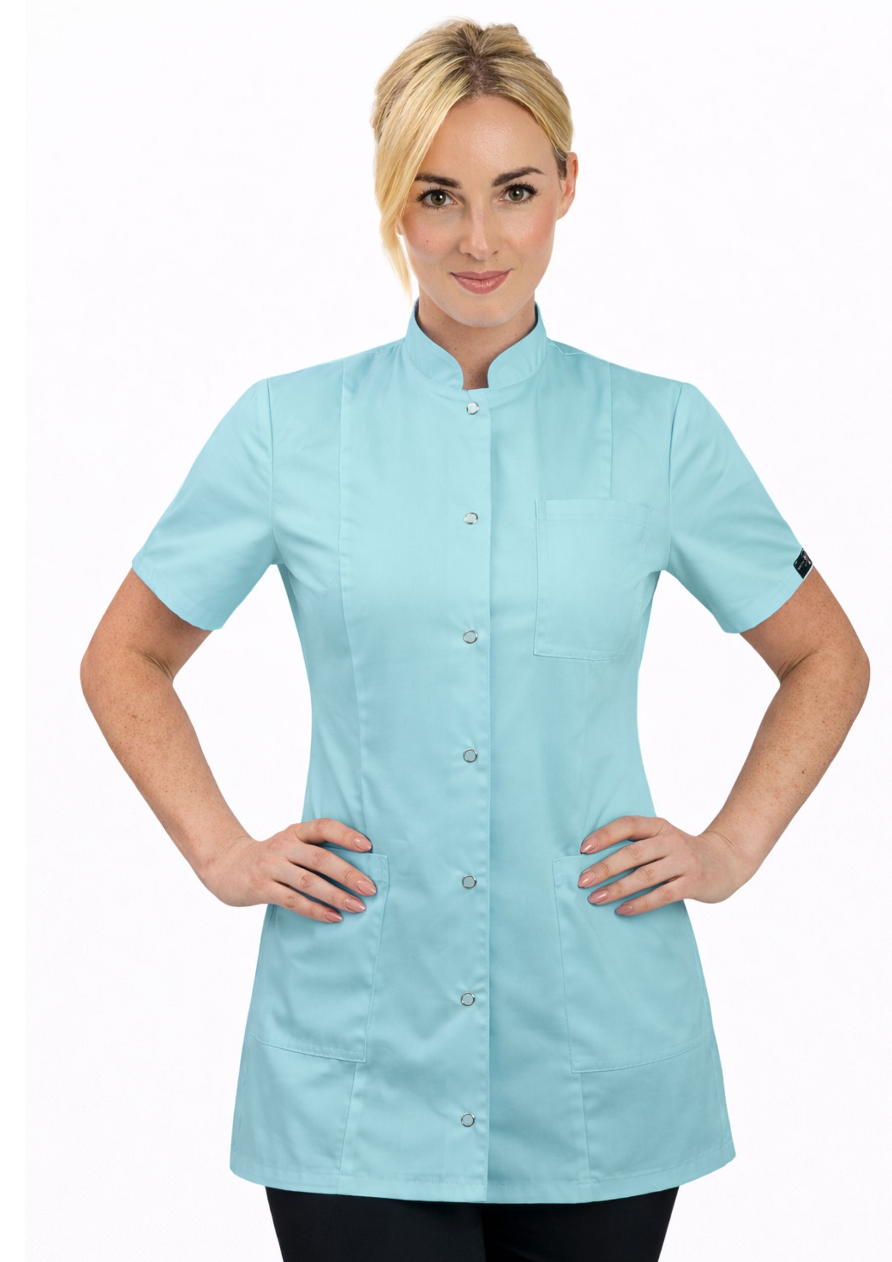 - Dłuższy rękaw – zapewnia wygodę i profesjonalny wygląd, idealny do pracy w gabinetach medycznych i kosmetycznych.